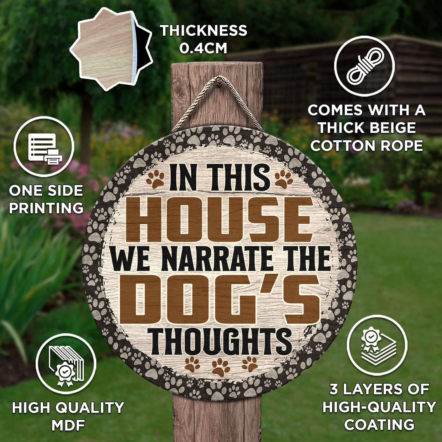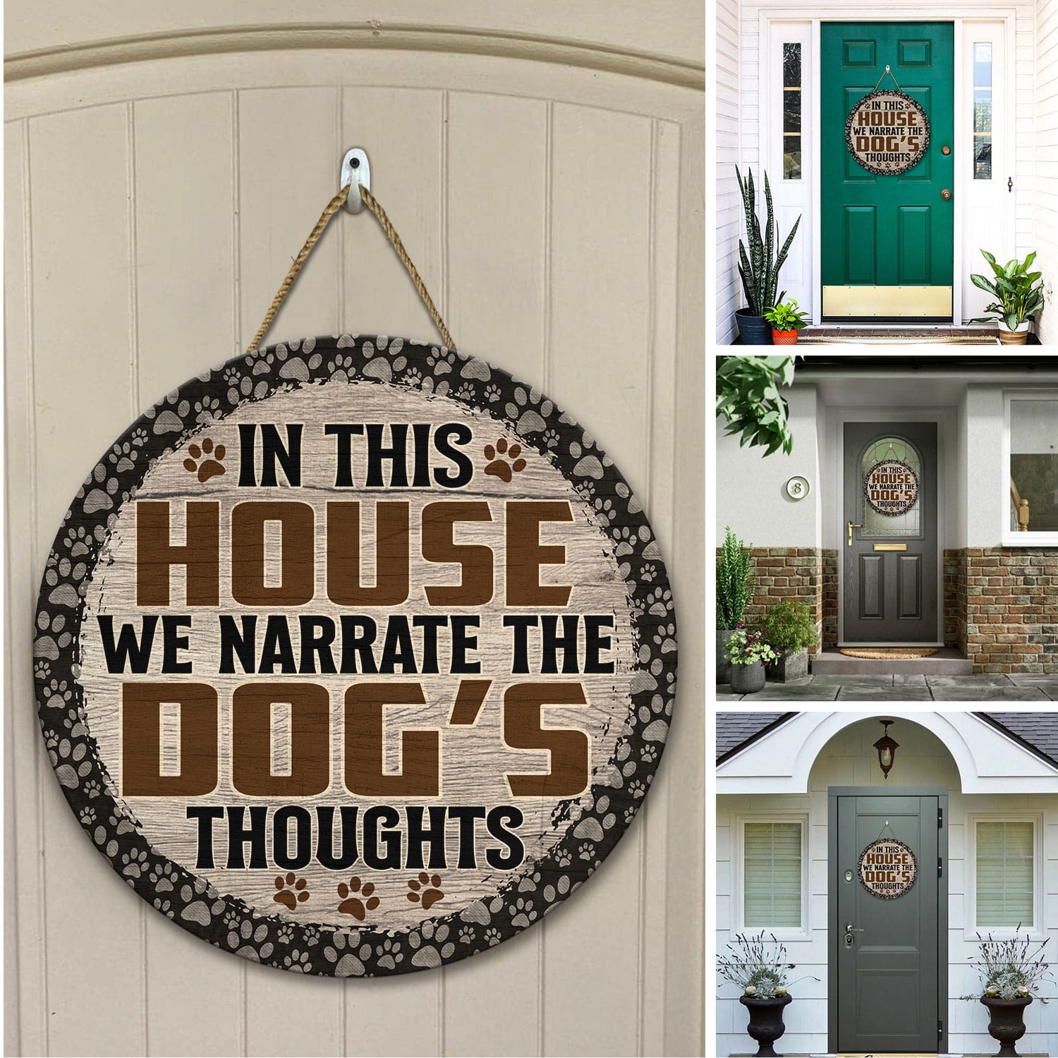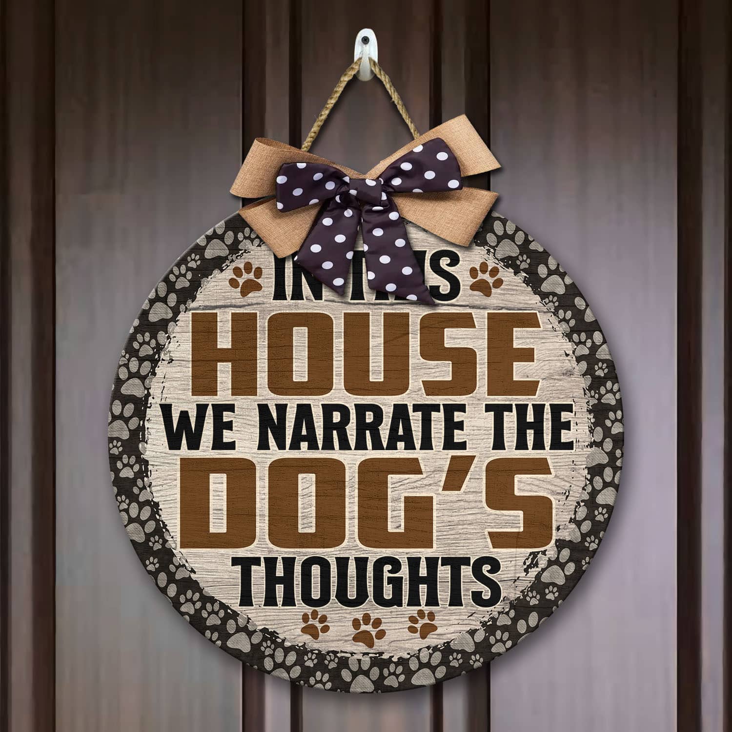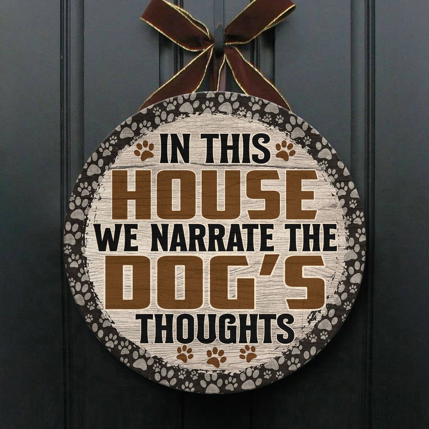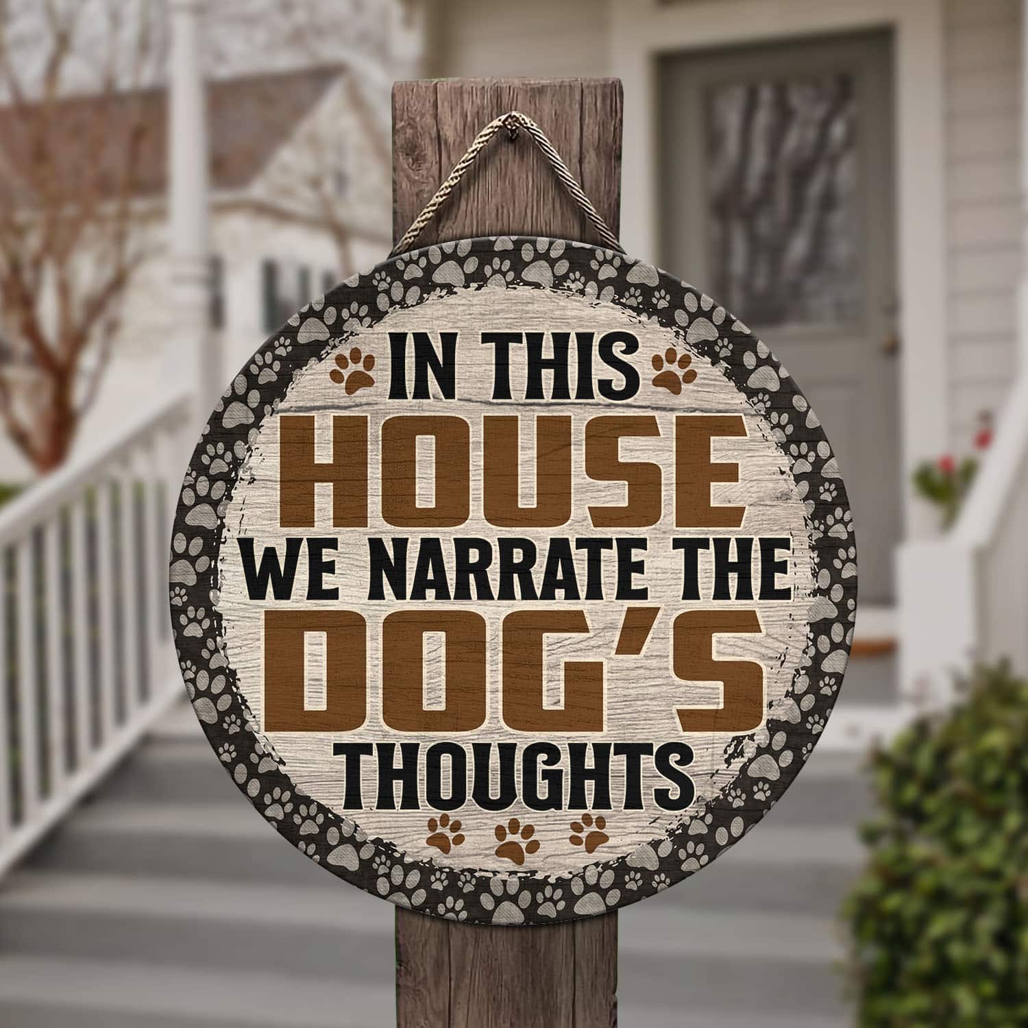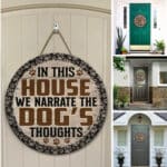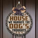 Let’s Shop In This House We Narrate the Dog’s Thoughts Love Dog Circle Wooden Door Sign – Front Porch Sign!