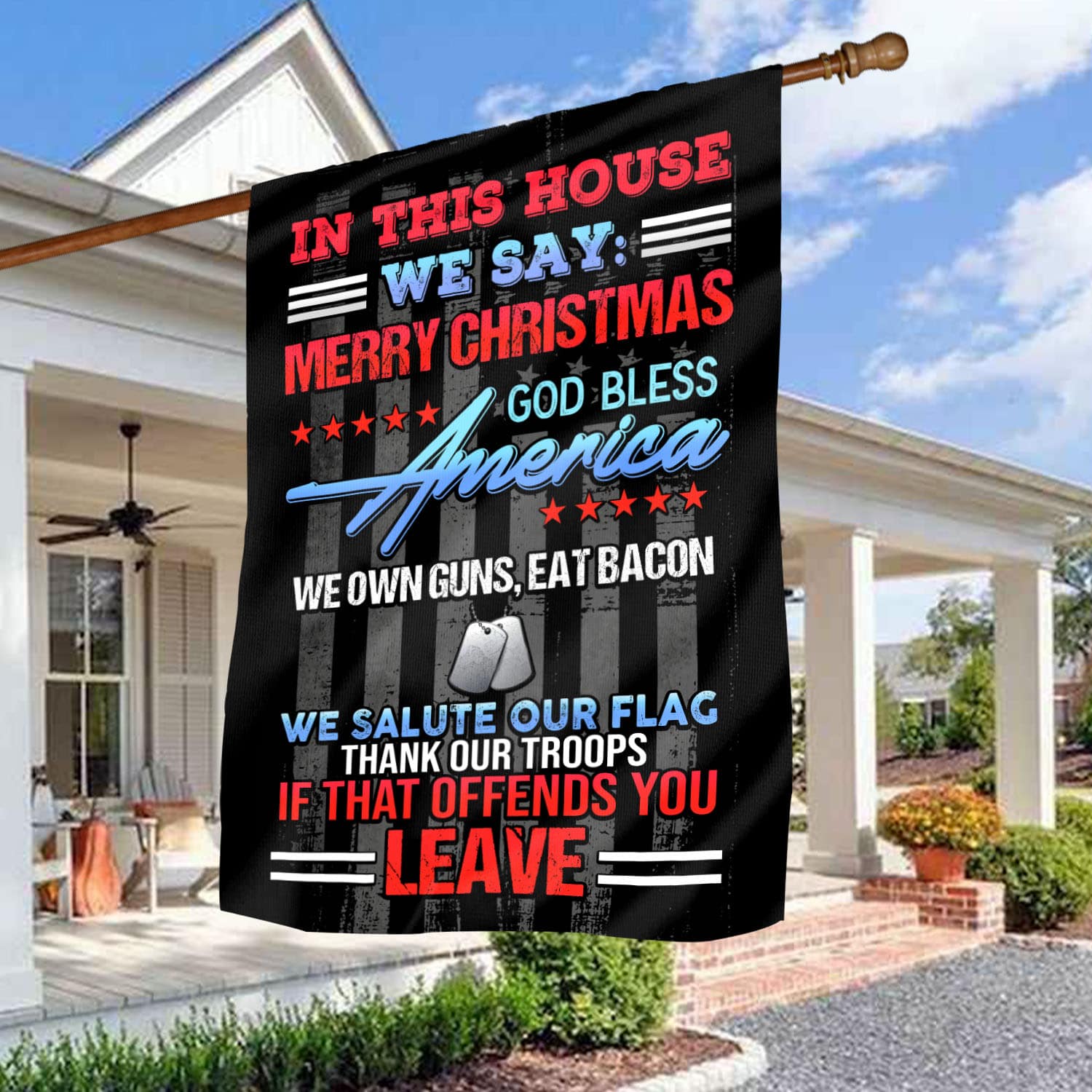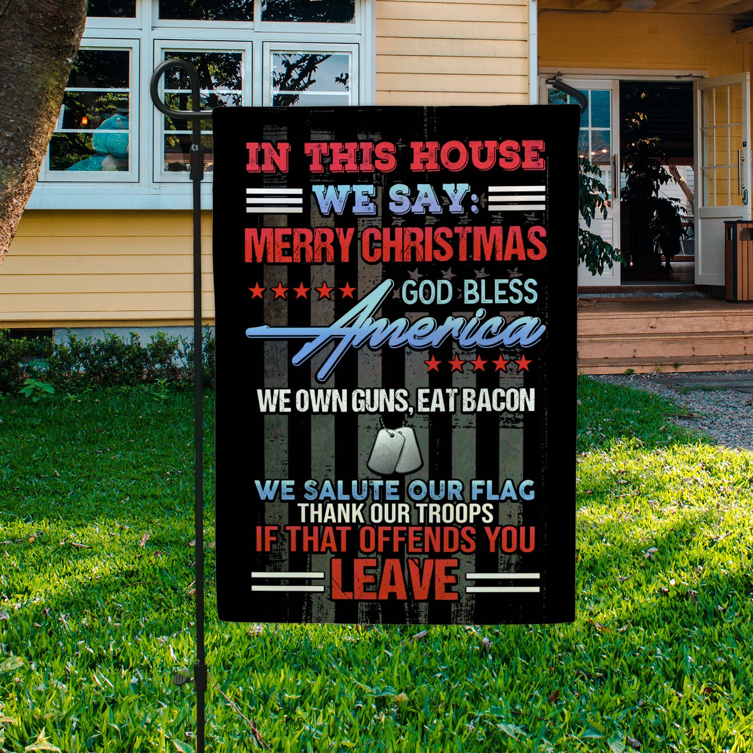 Let’s Shop In This House We Say Merry Christmas We Salute Our Flag If That Offends You Leave Garden Flag – Patriotic House Flag!