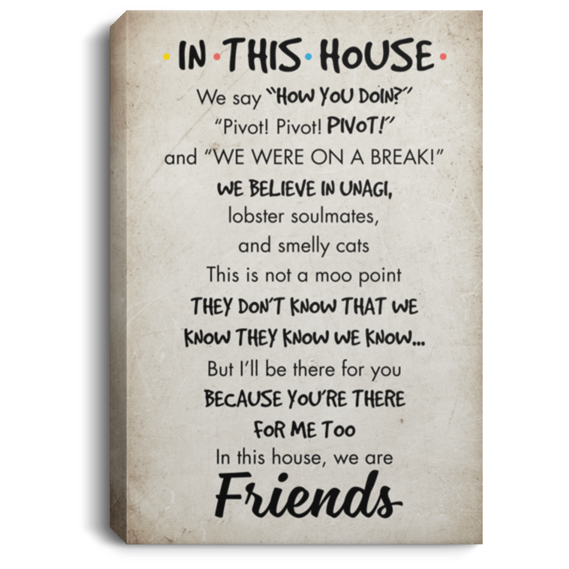 In This House We Say How You Doin Gallery Wrapped Framed Canvas Prints – Unframed Poster – Home Decor Wall Art