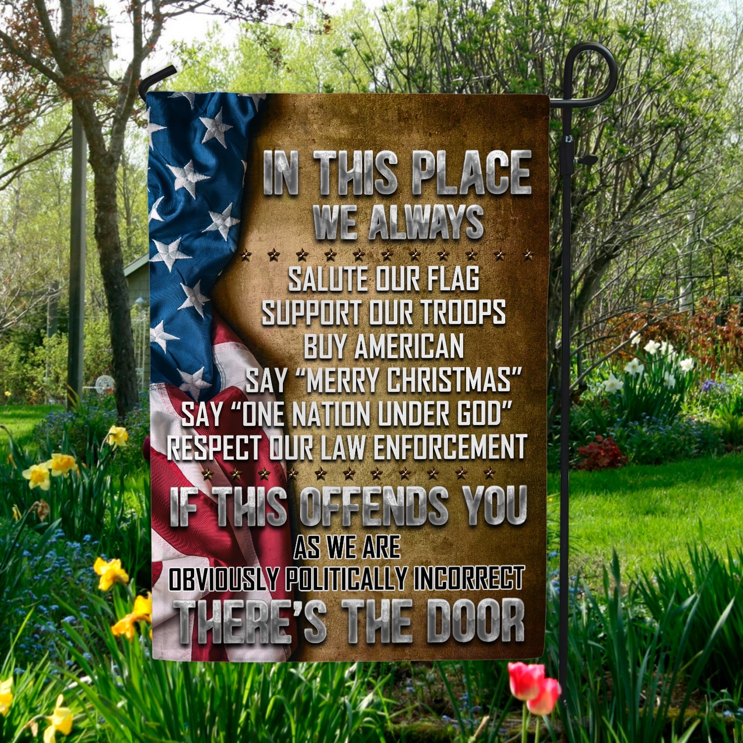 Are you spending too much time to find creative merchandise for you or suitable & special gifts for your mommy, your daddy, your son, your daughter, your children, your friends or someone you love? The struggle is over because we have various 4th Of July American Flag, Patriotic Flag, Patriotic American Flag, 4th Of July Flag, Faith Over Fear Flag, God American Flag, Happy 4th Of July Garden Flag, Don’t Tread On My Patriotic Flag, We The People Flag, God Bless America Flag, Patriotic 4th Of July Flag, In This Place We Salute The Flag, In This Place We Salute The Flag, In This Place We Say Merry Christmas Flag which will make perfect presents for your beloveds. In order to make your present stand out, we have created lots of unique and awesome customized photo gifts & personalized designs.