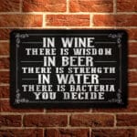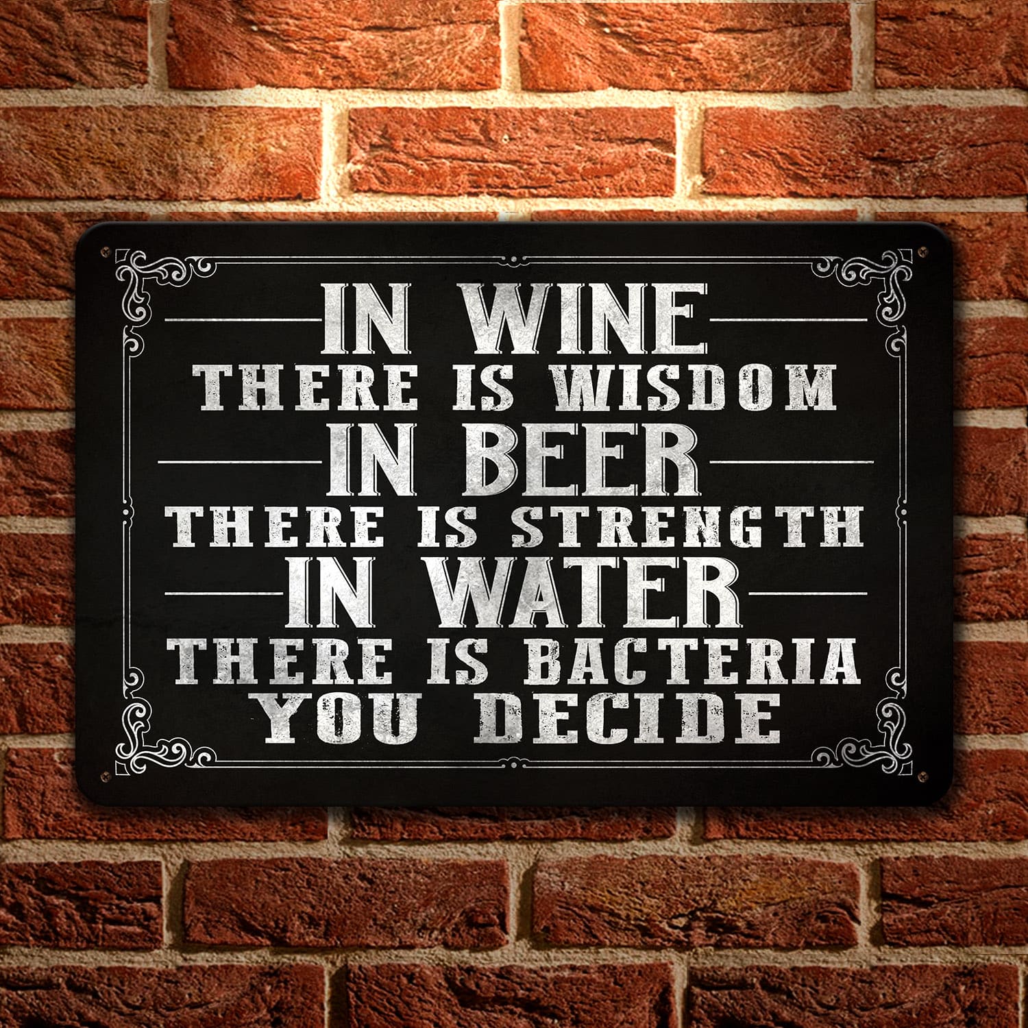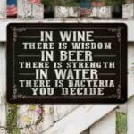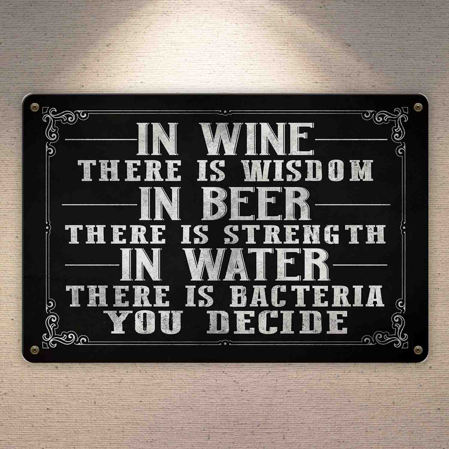 Let’s Shop In Wine There Is Wisdom In Beer There Is Strength In Water Is Bacteria Funny Metal Sign – Front Sign!