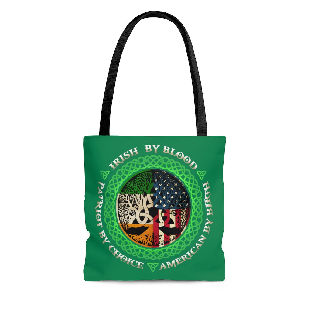 Shop Irish By Blood Patriot By Choice American By Birth All Over Print Tote Bag – Shoulder Bag for Irish Women.