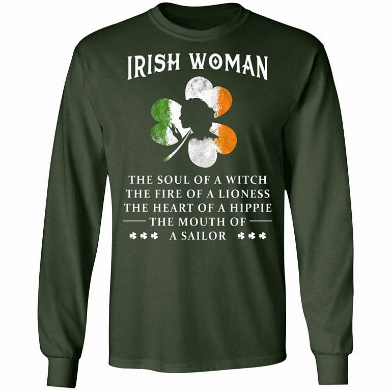 Irish Woman The Soul Of A Witch The Fire Of A Lioness The Heart Of A Hippie Shamrock Hoodie – Sweatshirt