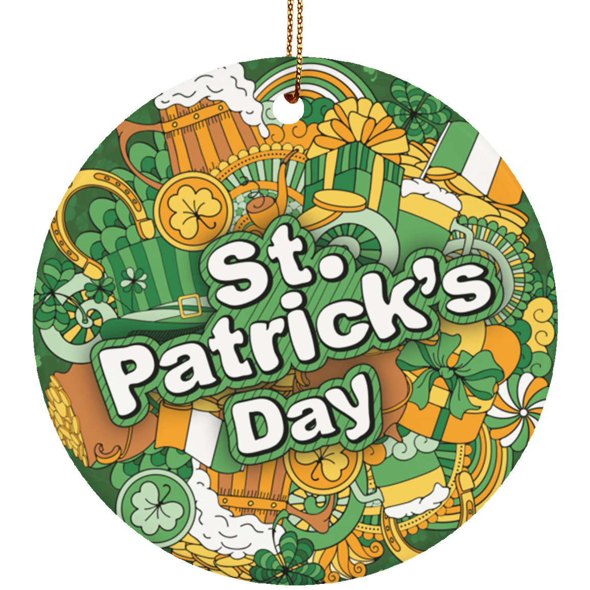 St.Patrick’s Day Decorative Holiday Flat Circle Porcelain Ceramic Ornament Keepsake – Decoration Gift