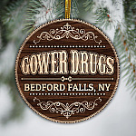 Let’s Shop Gower Drugs Bedford Falls A Wonderful Life Funny Decorative Christmas Circle Ornament Keepsake!