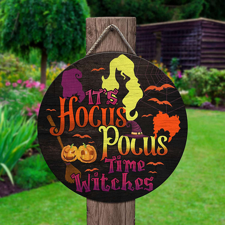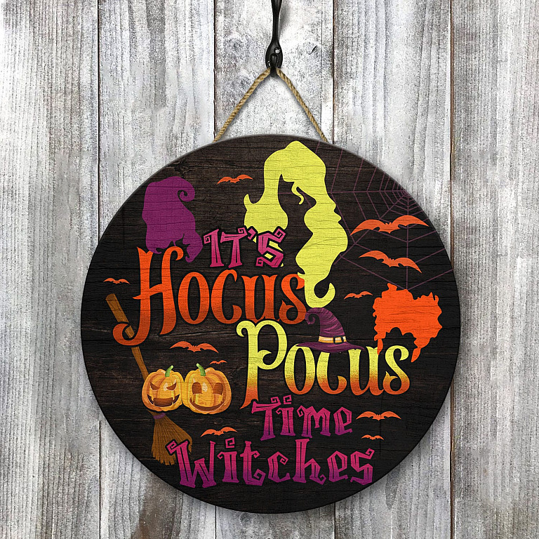 Let’s Shop It’s Hocus Pocus Time Witches Wooden Door Sign – Three Witches Sandersons Sisters Halloween Front Porch Sign Decor!