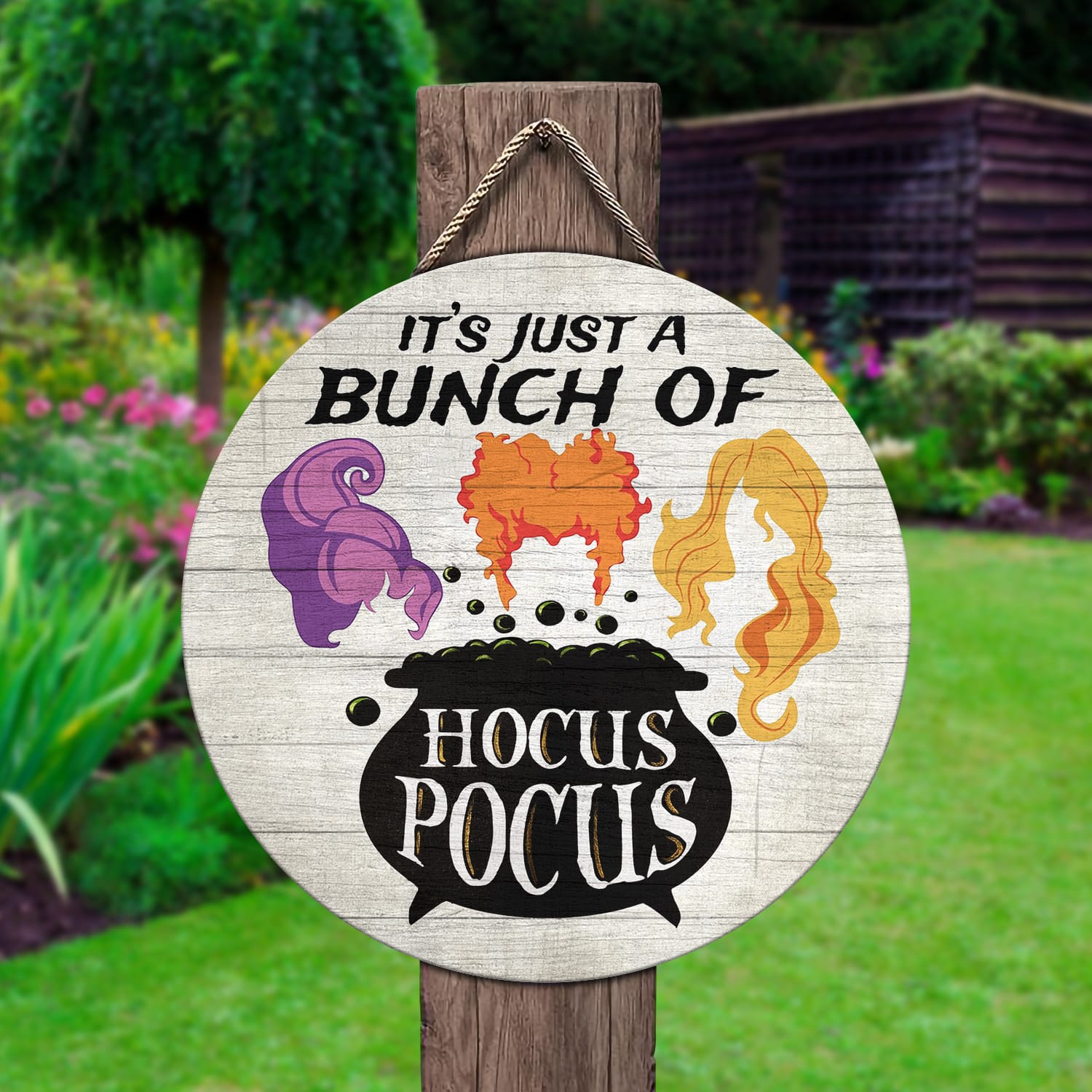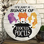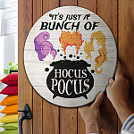 Let’s Shop It’s Just A Bunch Of Hocus Funny Pocus Decorative Circle Wooden Door Sign – Front Porch Sign Outdoor Decor Halloween Farmhouse!