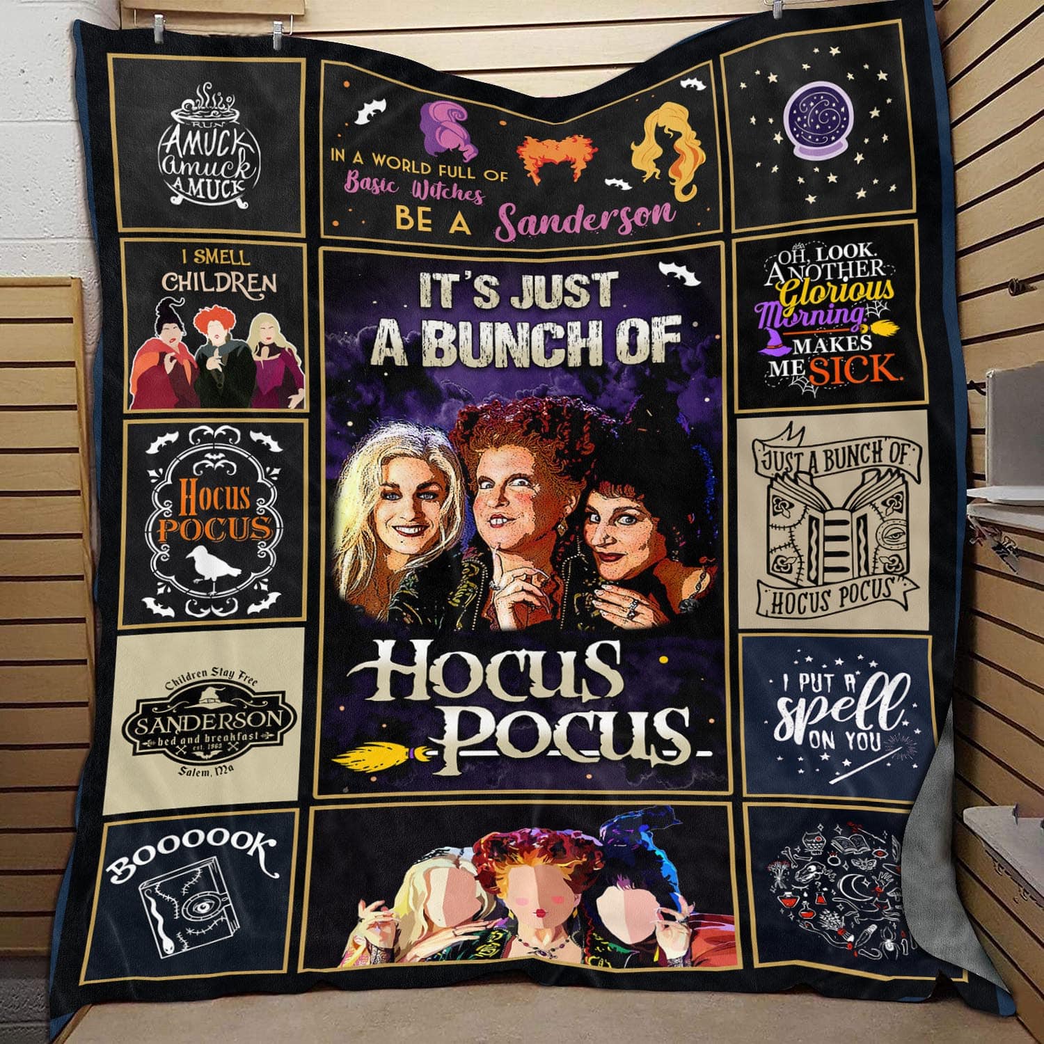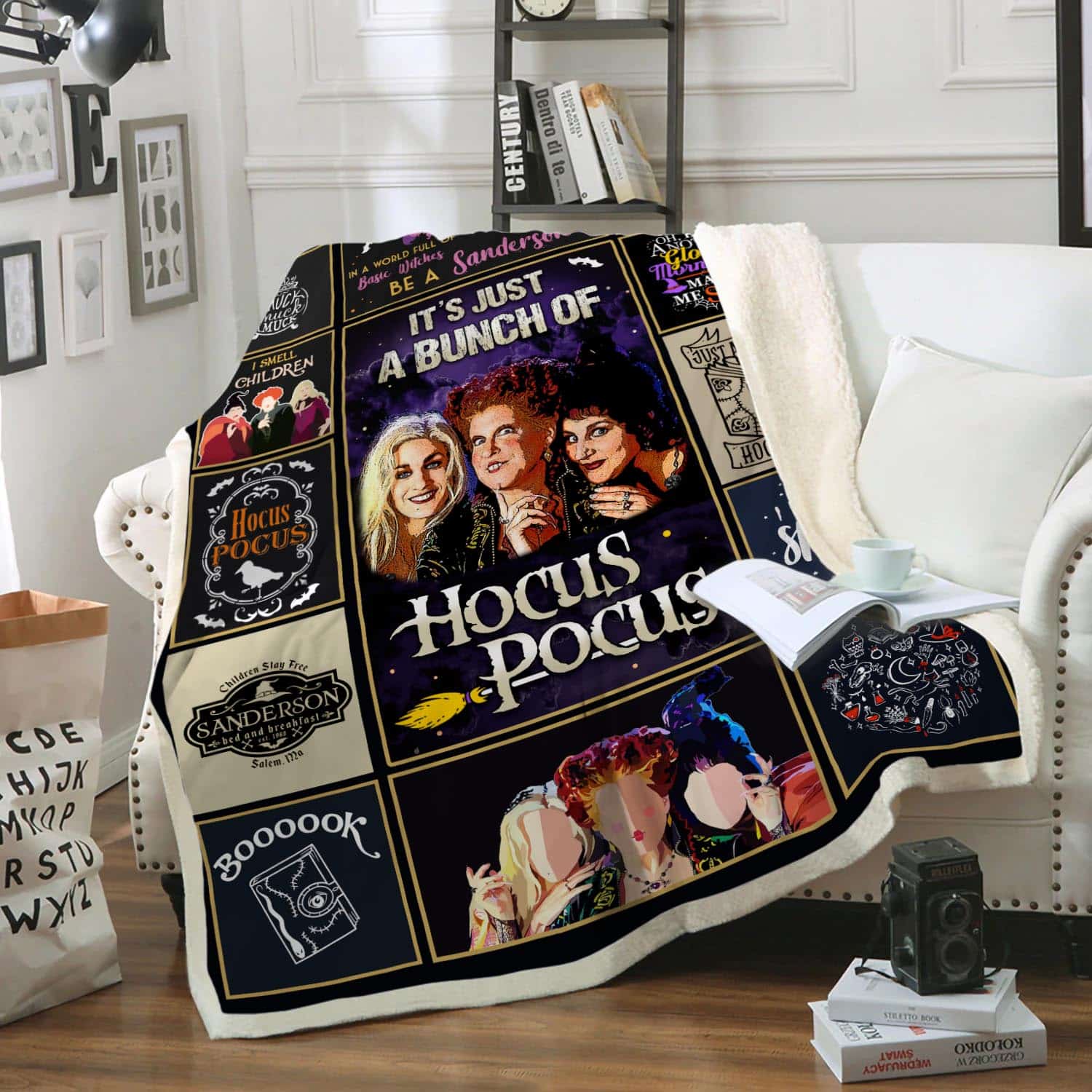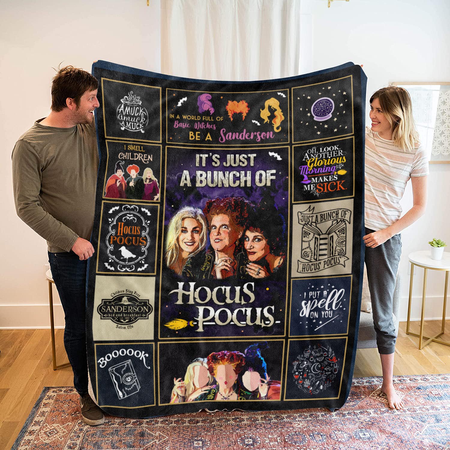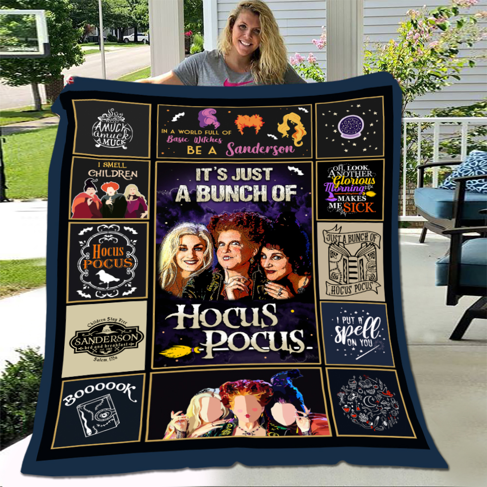 It’s Just A Bunch Of Hocus Three Witches Fleece Blanket – Premium Sherpa Blanket – Woven Blanket