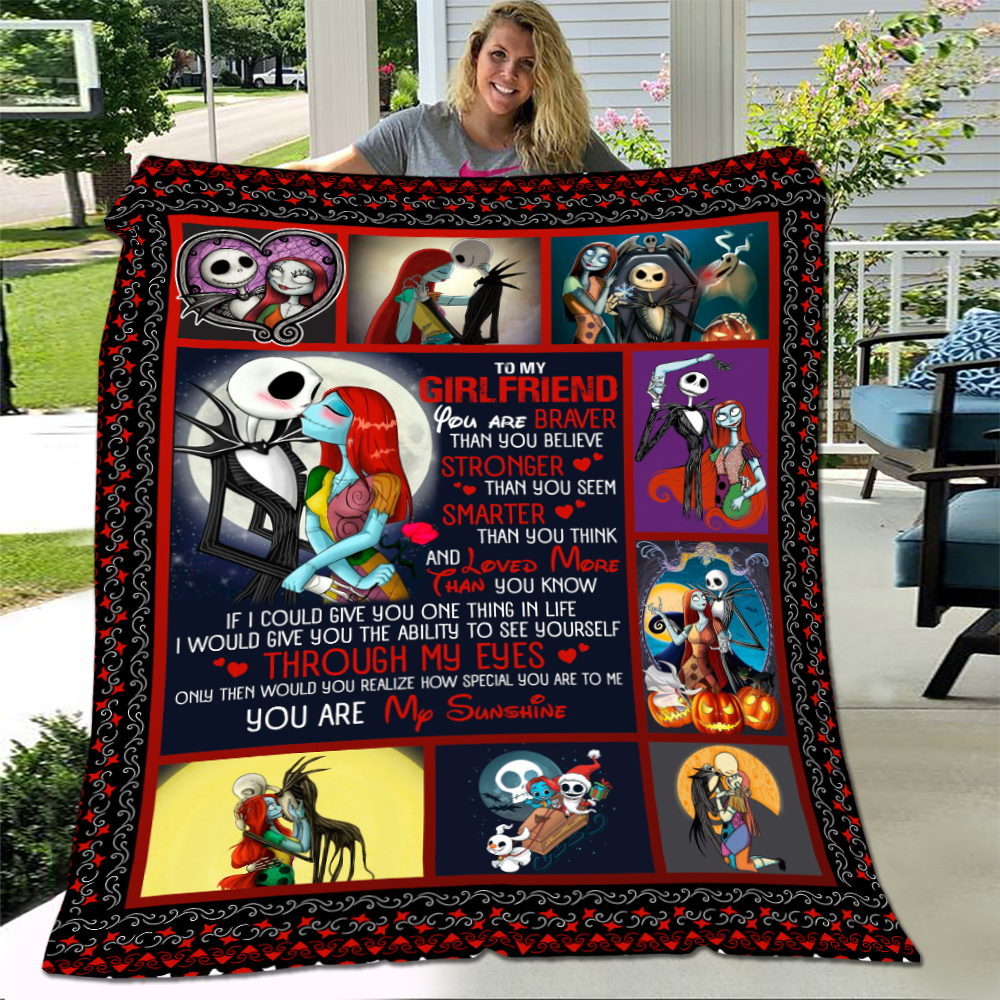Let’s Shop Jack And Sally To My Girlfriend You Are Braver Than You Believe Nightmare Fleece Blanket- Mink Sherpa Blanket!