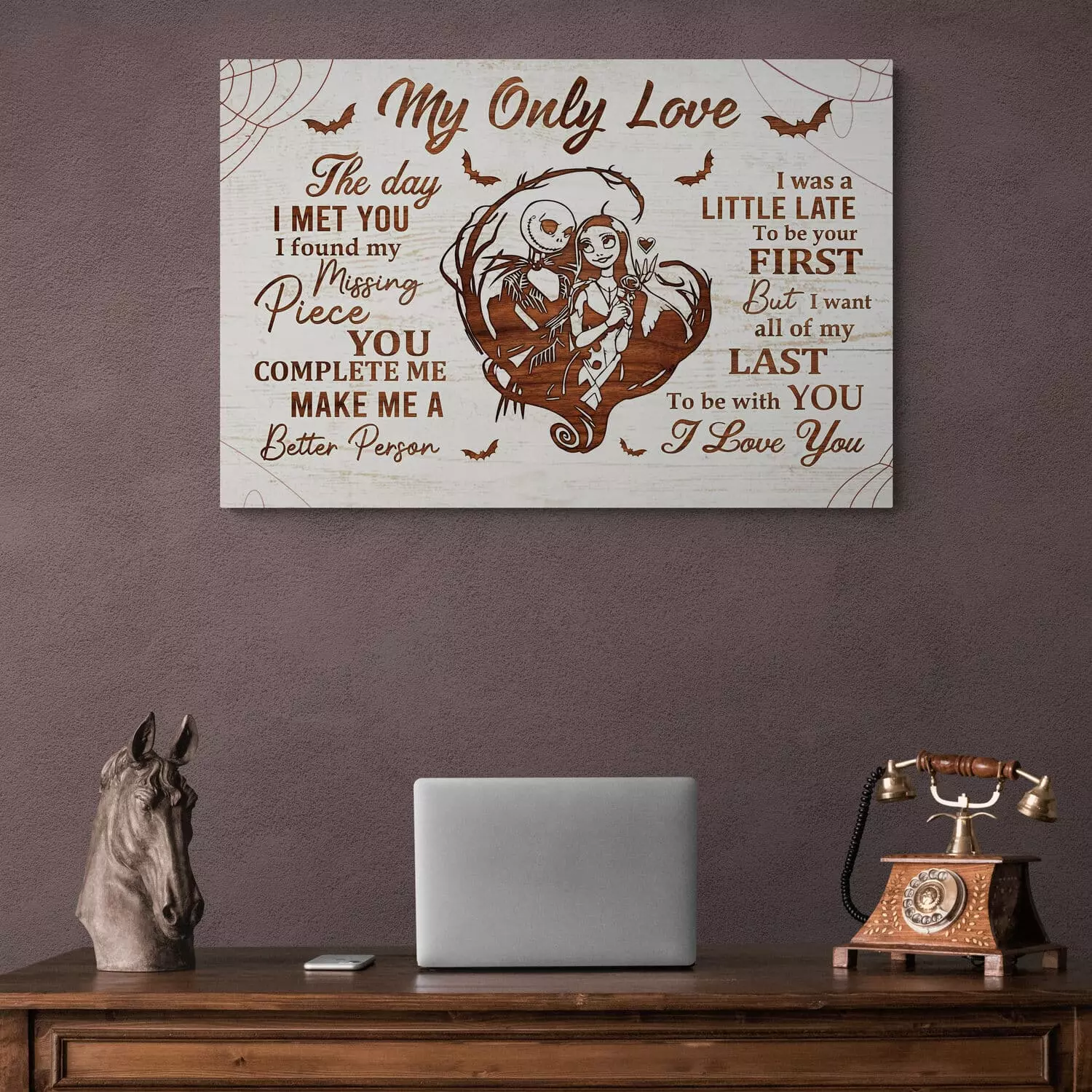 Let’s Shop My Only Love the Day I Met You I Found My Missing Piece Canvas – Jack and Sally Halloween Poster – Gift for Couple!