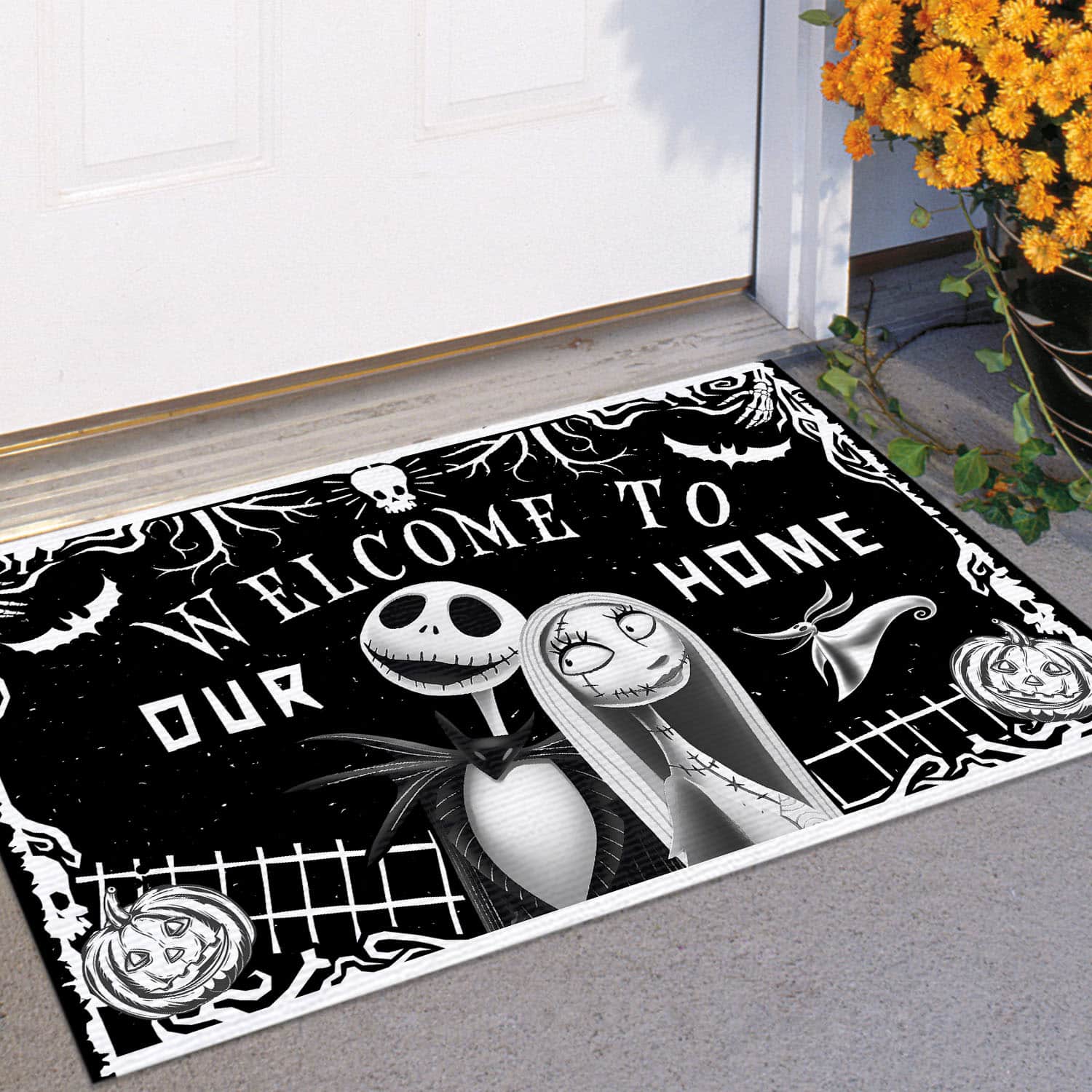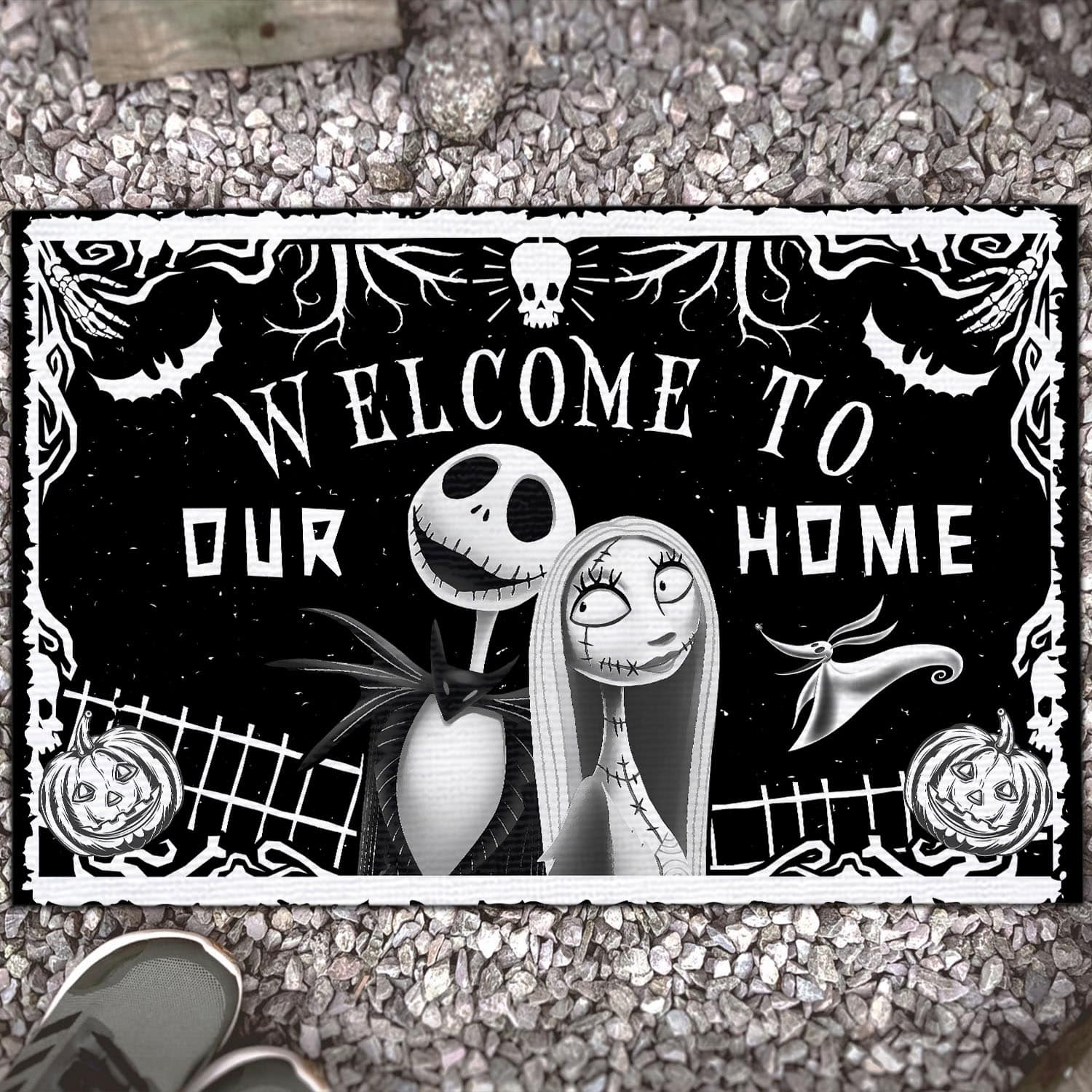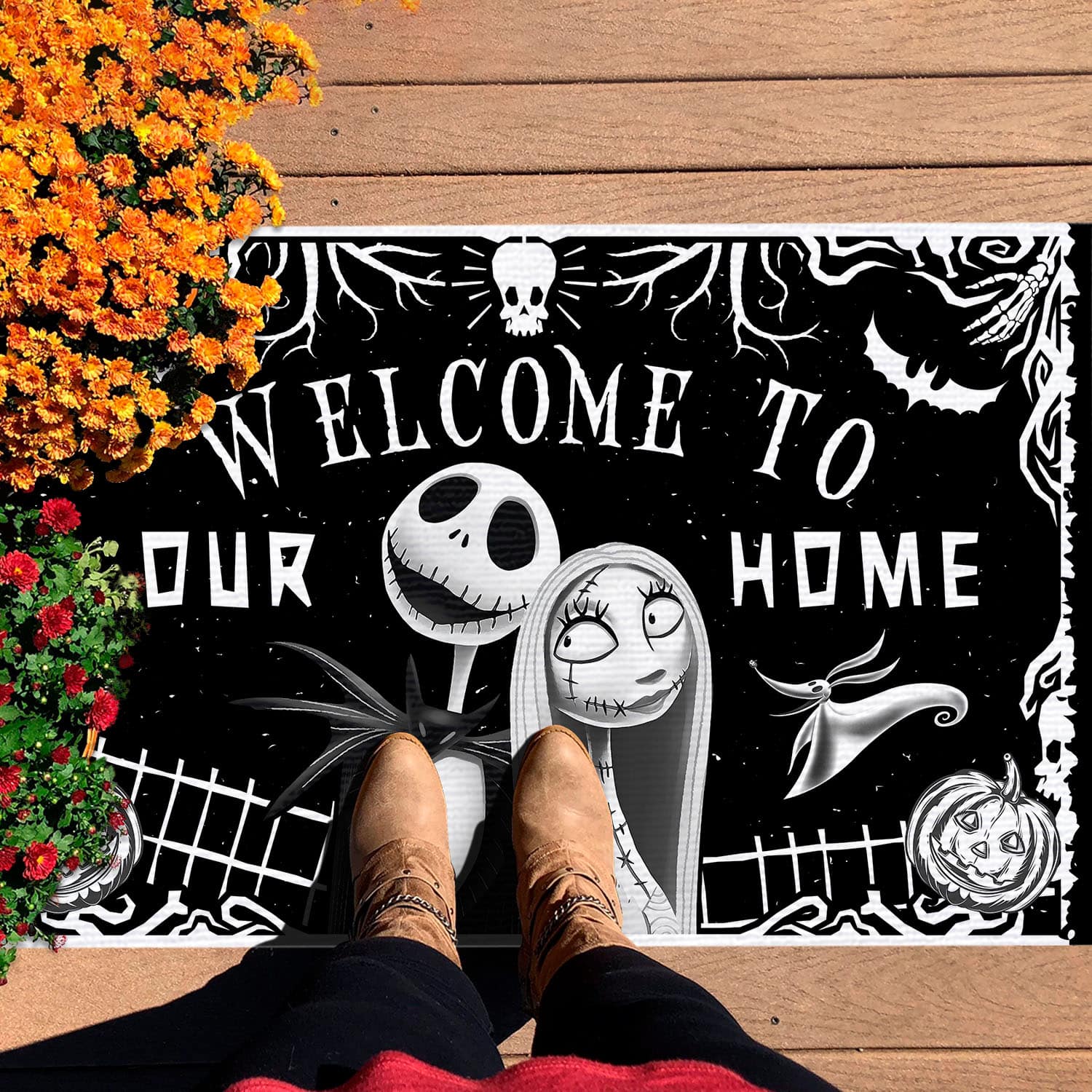 Let’s Shop Welcome To Our Home Jack And Sally House Doormat – Funny Halloween Outdoor Indoor Doormat!