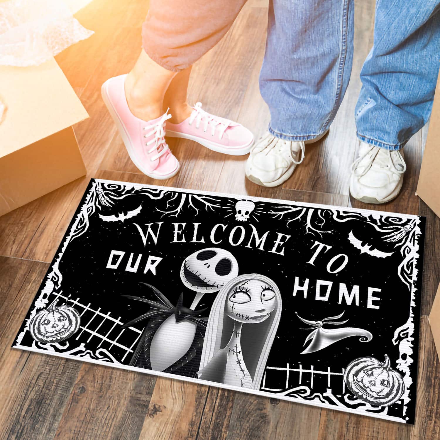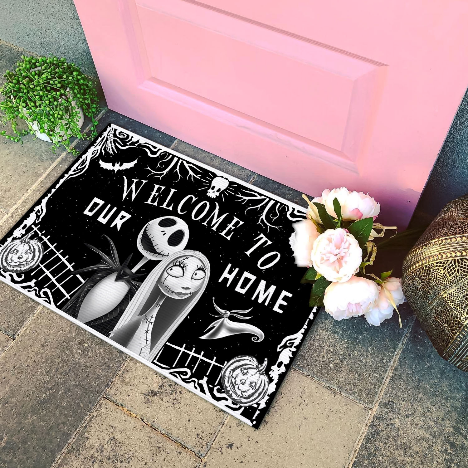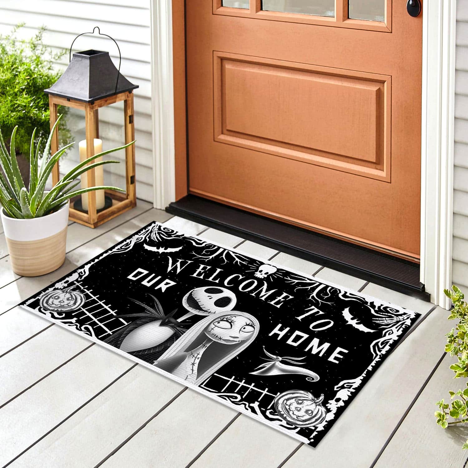 Let’s Shop Welcome To Our Home Jack And Sally House Doormat – Funny Halloween Outdoor Indoor Doormat!