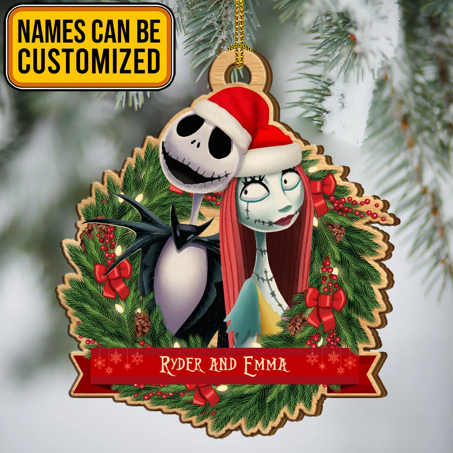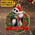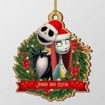 Let’s Shop Personalized Couple Santa Jack And Sally Nightmare Before Christmas Custom Shaped Wooden Christmas Ornament!