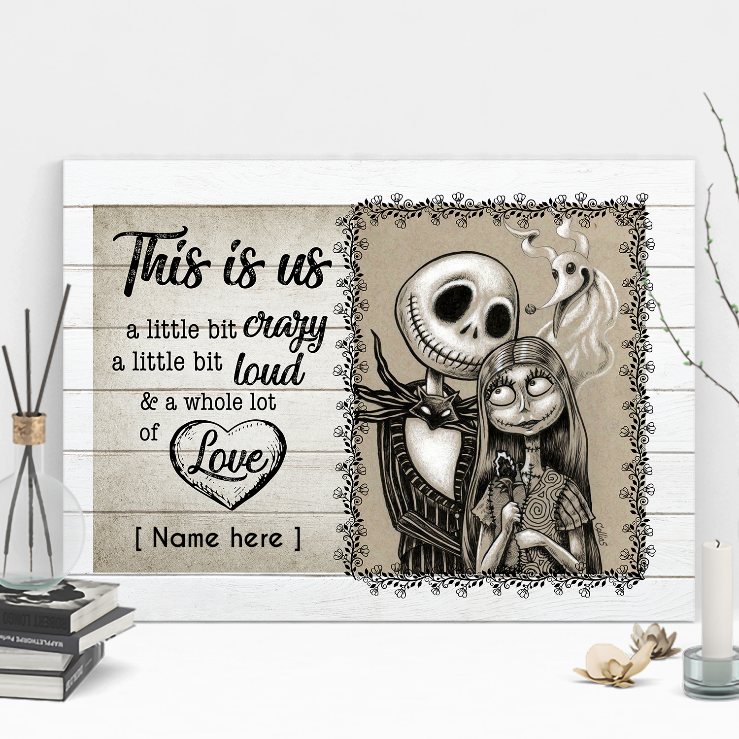 Let’s Shop Personalized Nightmare Jack and Sally This is Us A Little Bit Crazy Framed Canvas Prints – Unframed Poster!