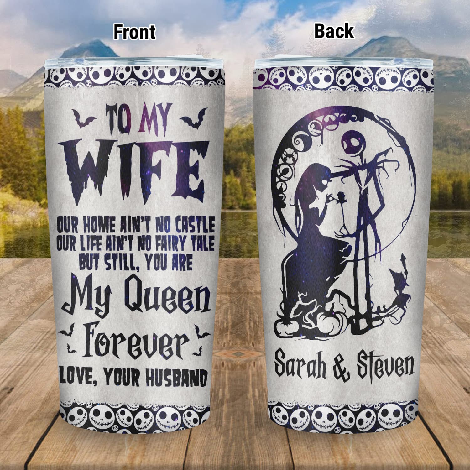 Let’s Shop Custom Husband To My Wife Our Home Ain’t No Castle Jack And Sally Insulated Tumbler Cup With Lid!