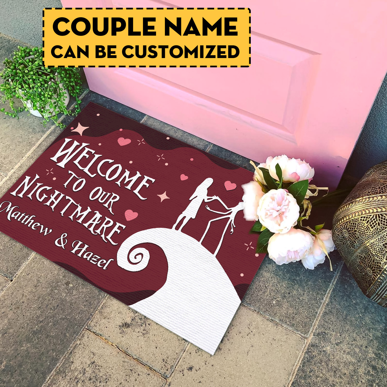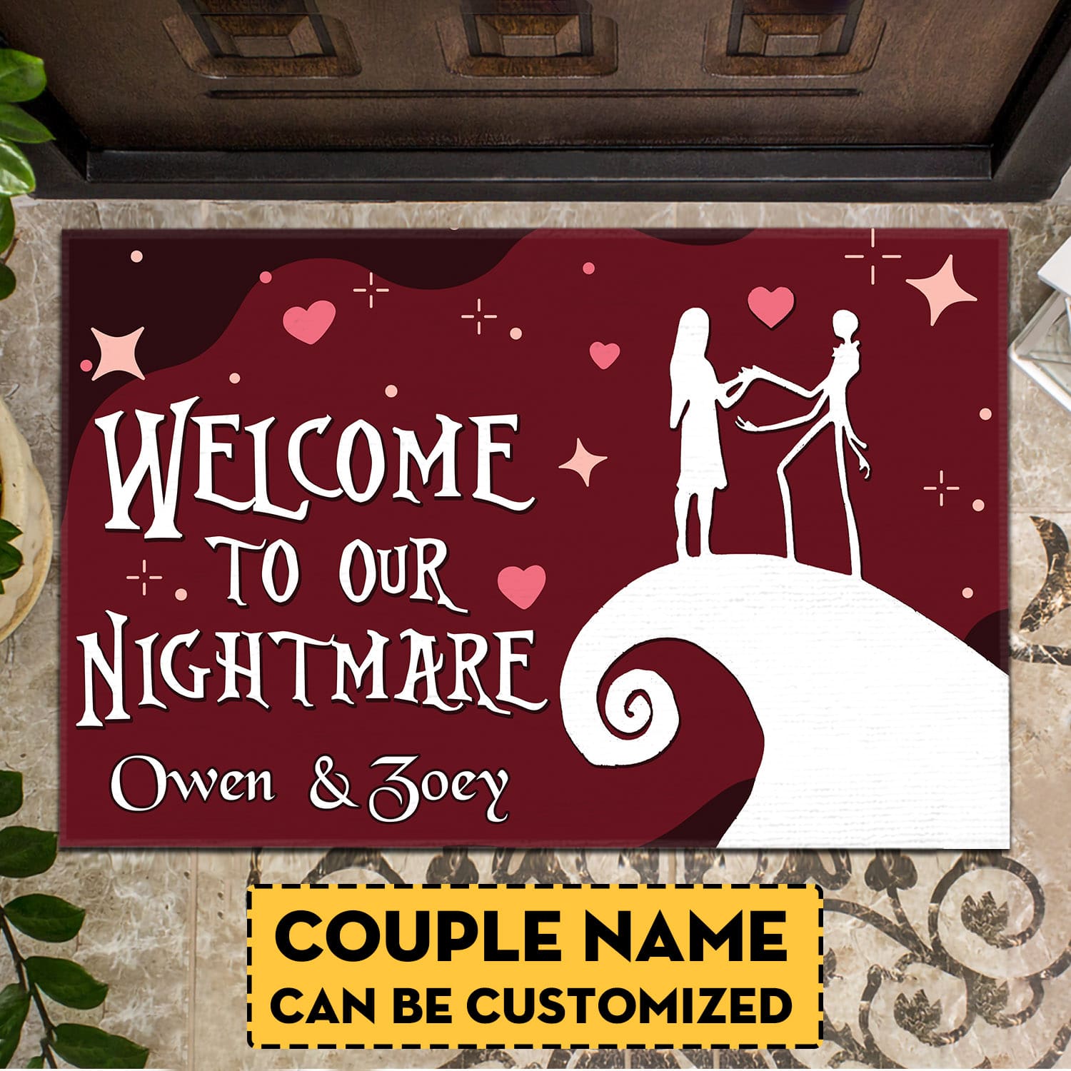 Are you spending too much time to find creative merchandise for you or suitable & special gifts for your mommy, your daddy, your son, your daughter, your children, your friends or someone you love? The struggle is over because we have various Personalized Jack Ske-llington And Sally Welcome To Our Nightmare Outdoor Indoor Doormat, Personalized Couple Doormat, Couple Door Mat, Personalized Door Mat, Personalized Welcome Mat, Personalized Name Doormat, Personalized Door Mats For Front Door, Welcome To Our Nightmare Doormat which will make perfect presents for your beloveds. In order to make your present stand out, we have created lots of unique and awesome customized photo gifts & personalized designs.