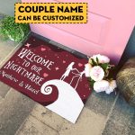 Let’s Shop Personalized Jack Skellington And Sally Welcome to Our Nightmare Outdoor Indoor Doormat!