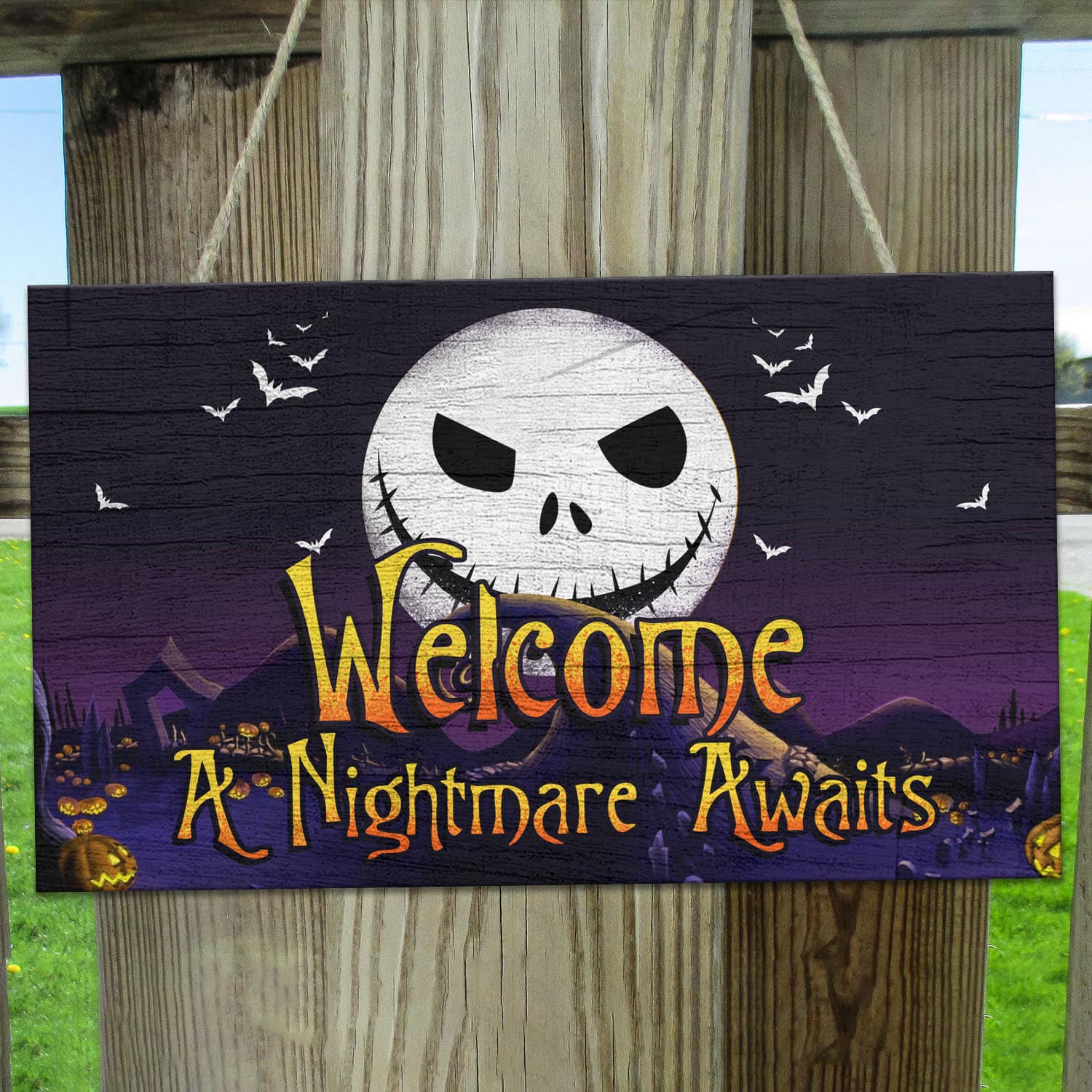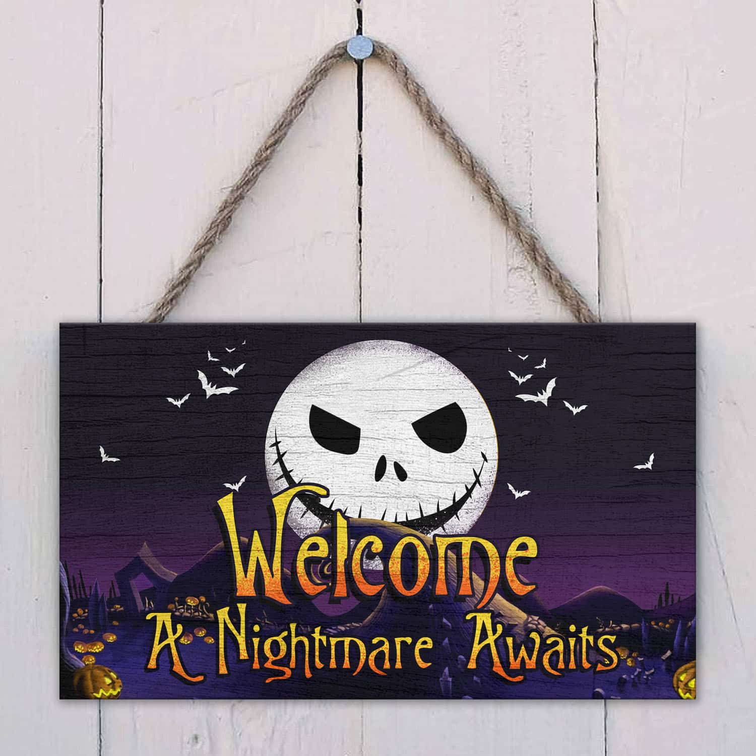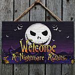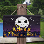 Let’s Shop Welcome A Nightmare Awaits Jack Skellington Nightmare Before Christmas Wooden Door Sign – Front Porch Sign!