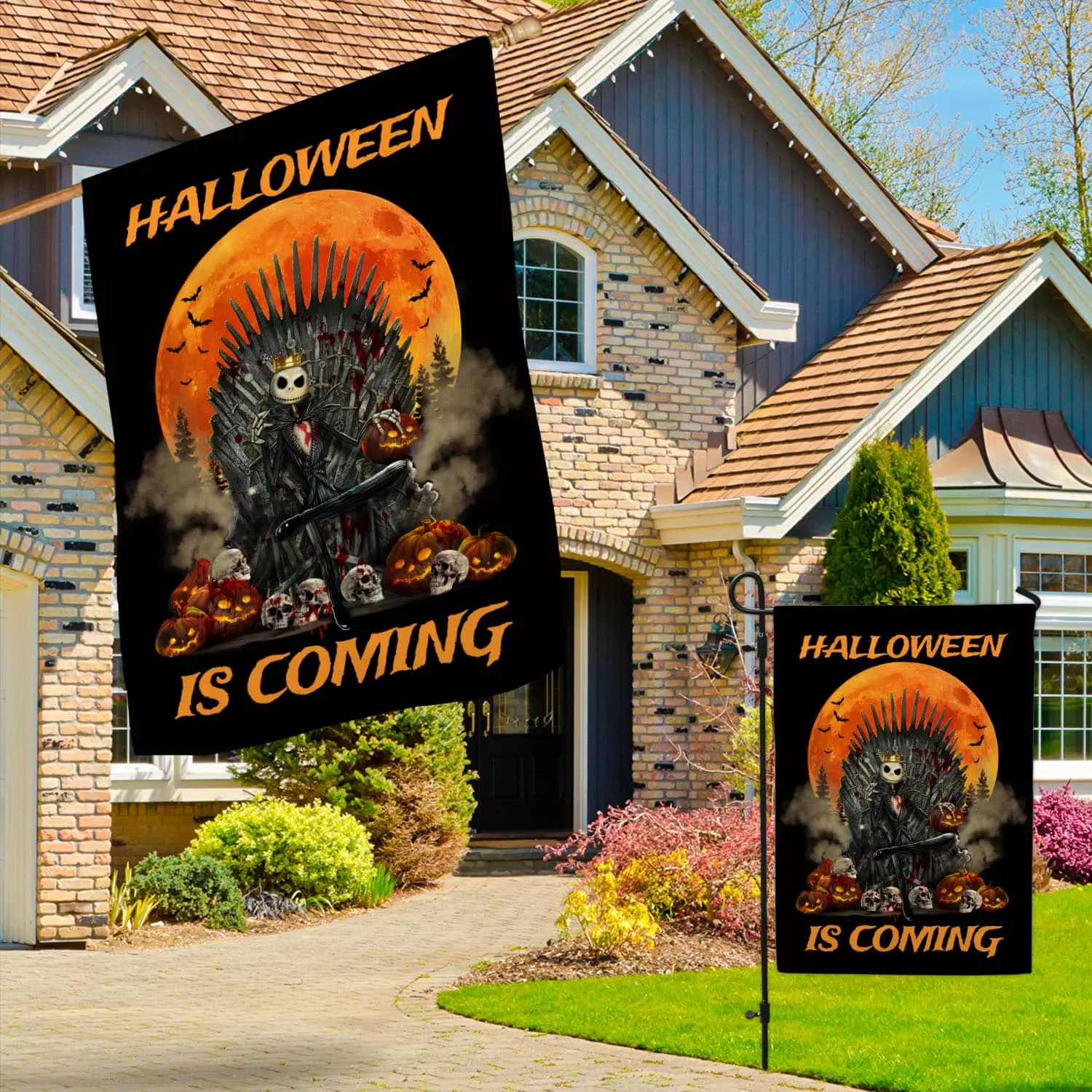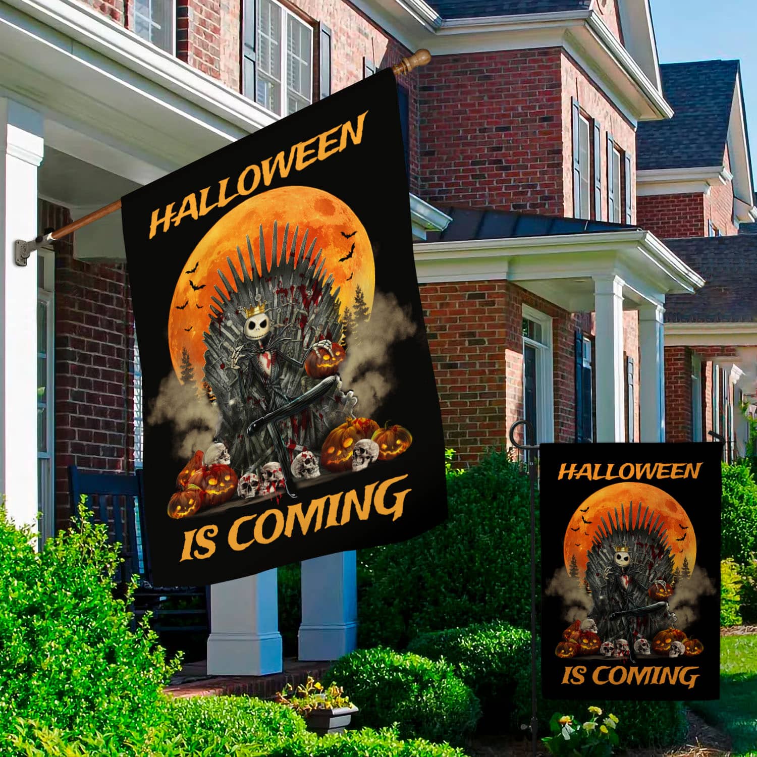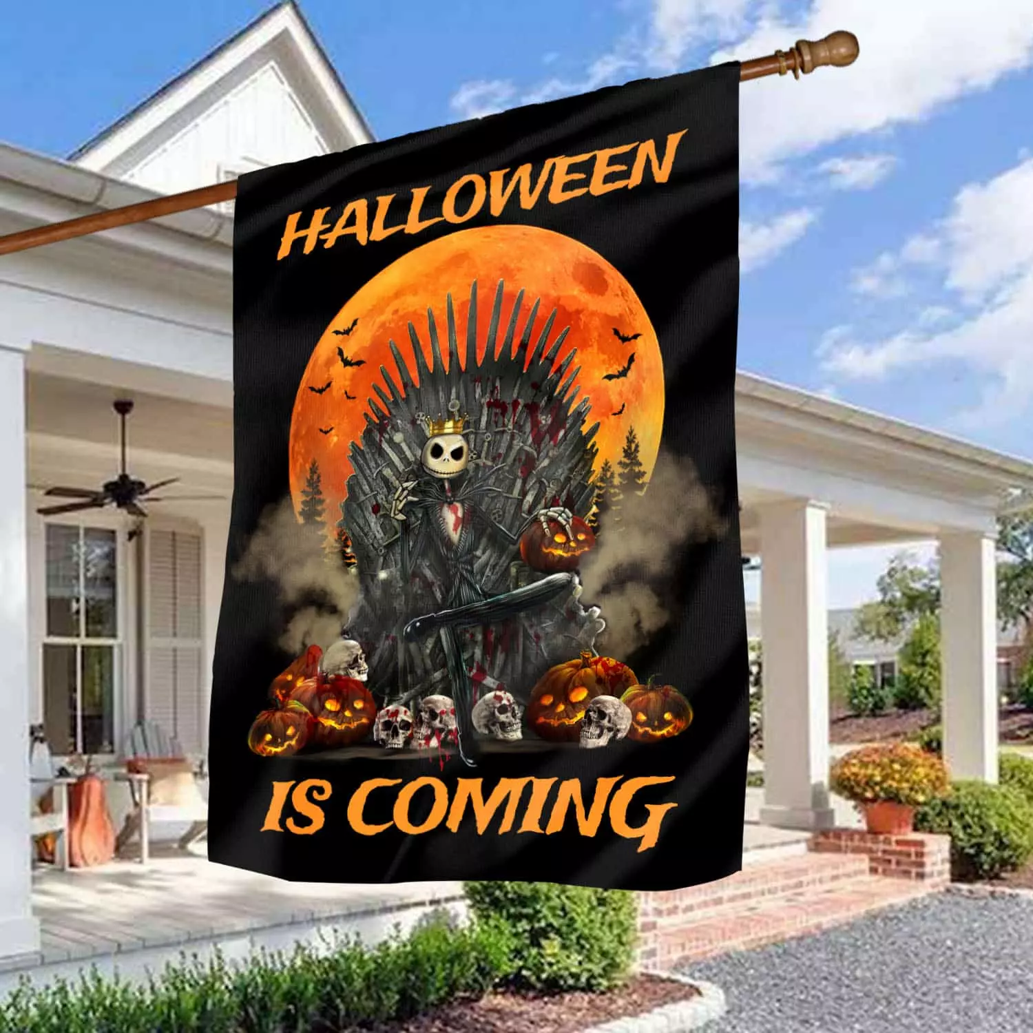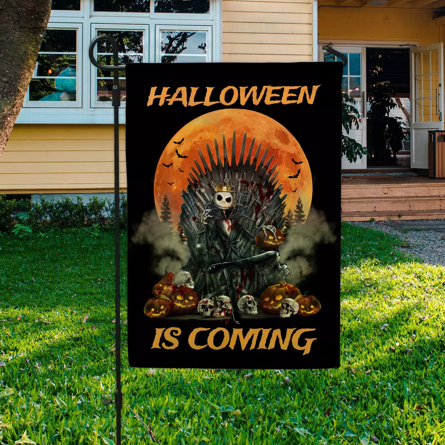 Let’s Shop Jack Skellington Halloween Is Coming Garden Flag – Nightmare Before Christmas Welcome House Flag!