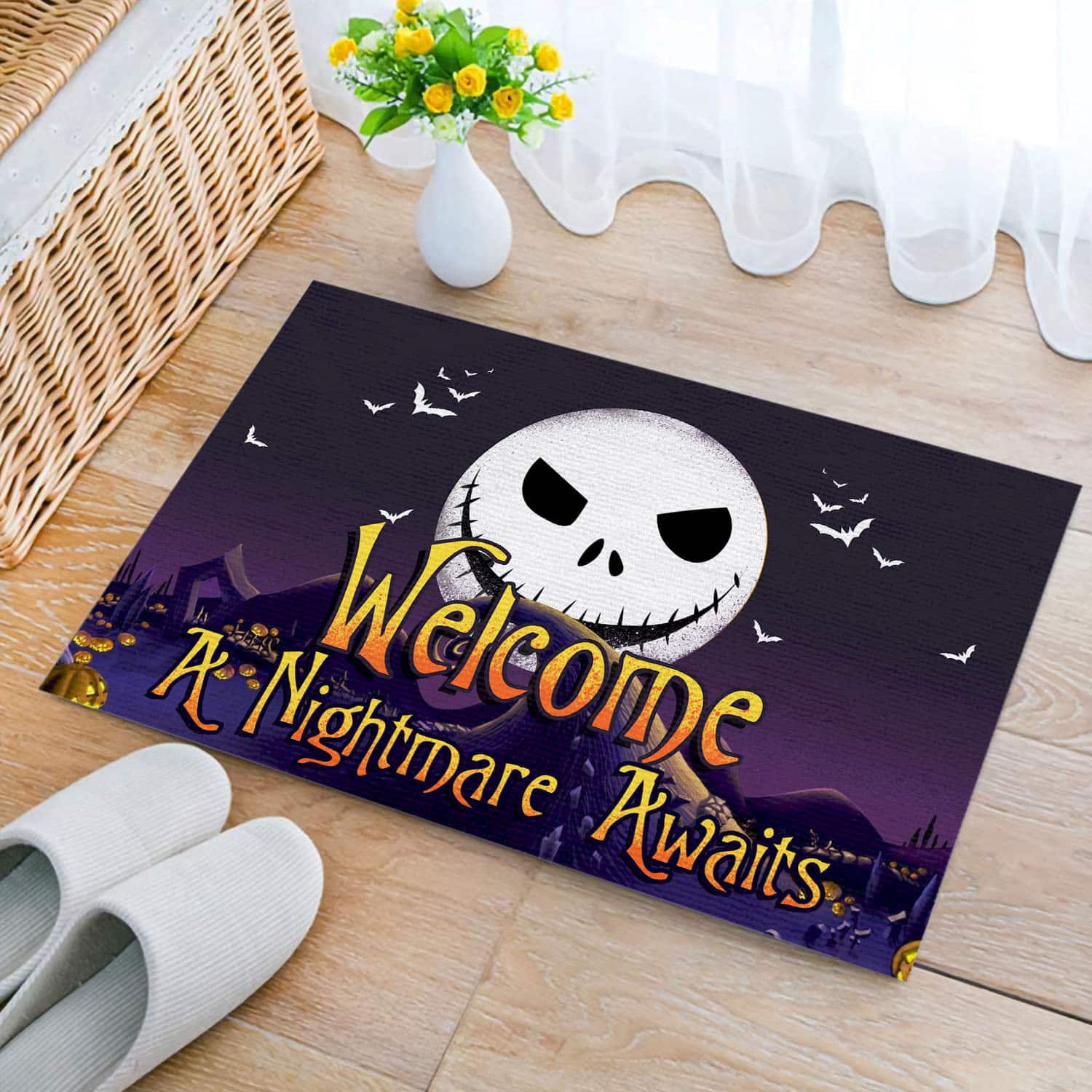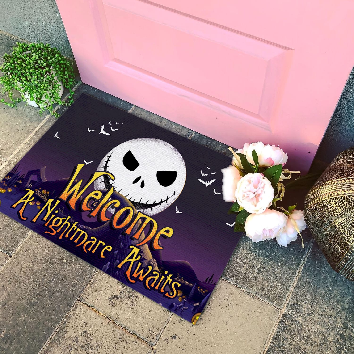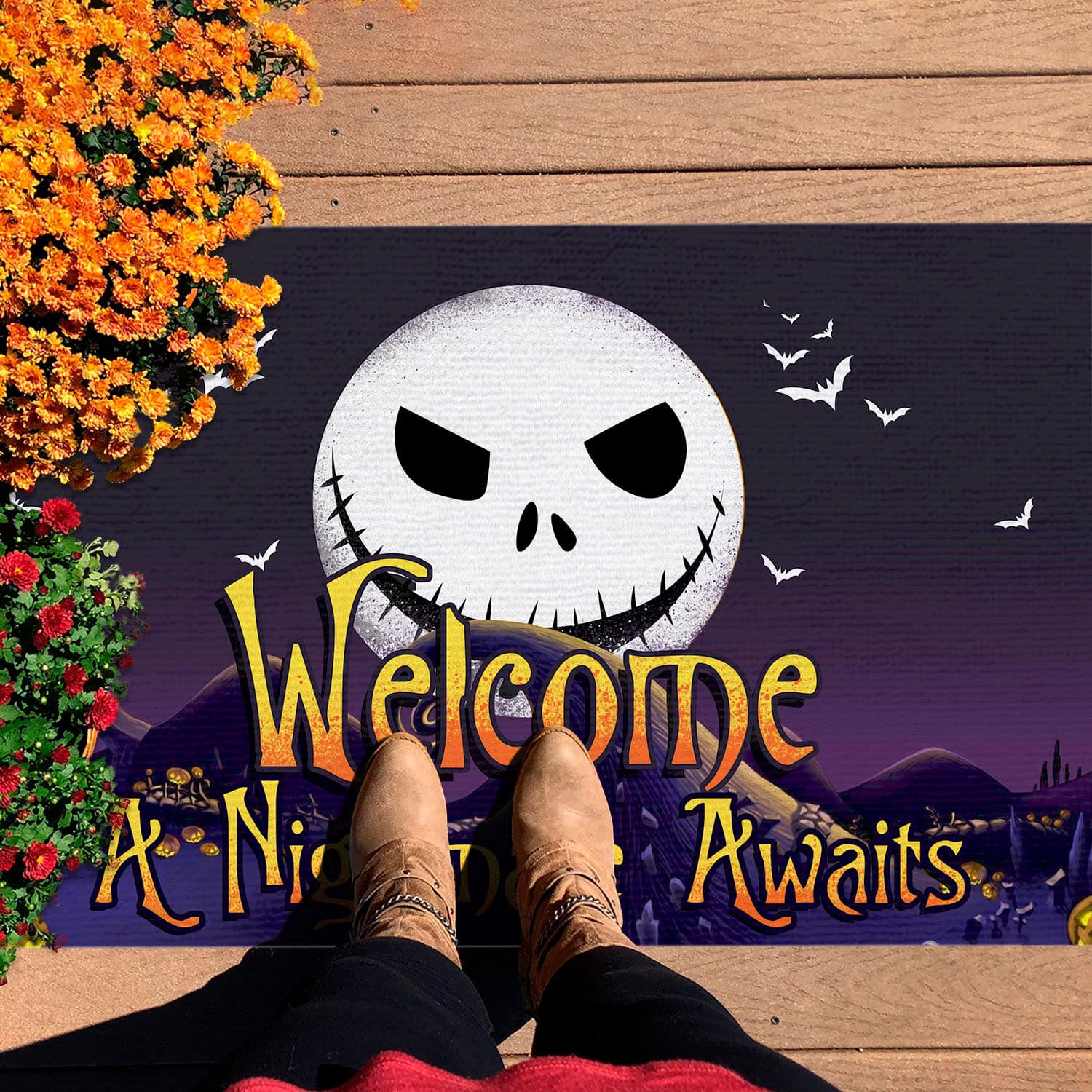 Let’s Shop Welcome A Nightmare Awaits Outdoor Indoor Doormat – Funny Jack Skellington Nightmare Before Christmas Door Mat!