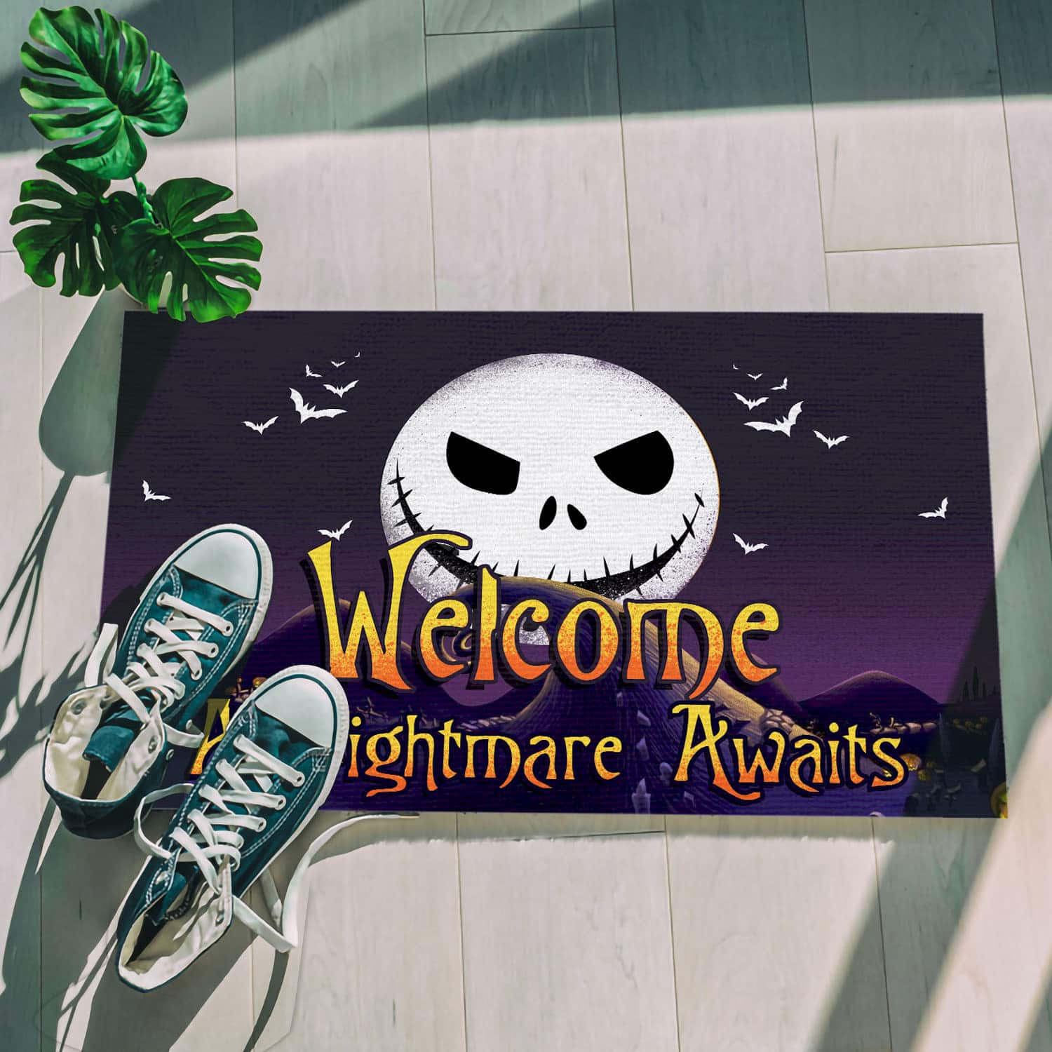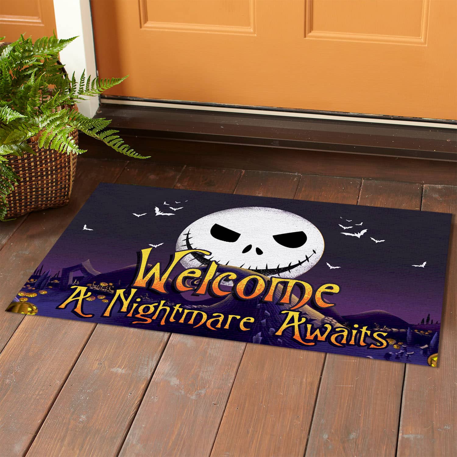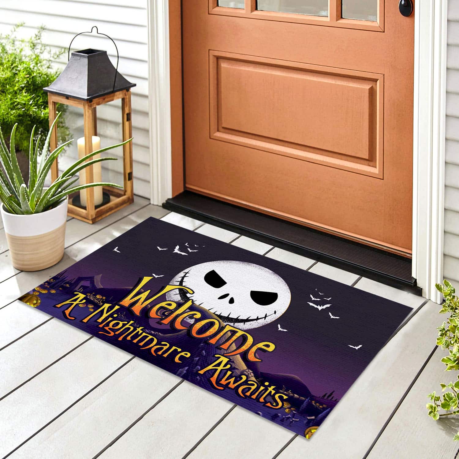 Let’s Shop Welcome A Nightmare Awaits Outdoor Indoor Doormat – Funny Jack Skellington Nightmare Before Christmas Door Mat!
