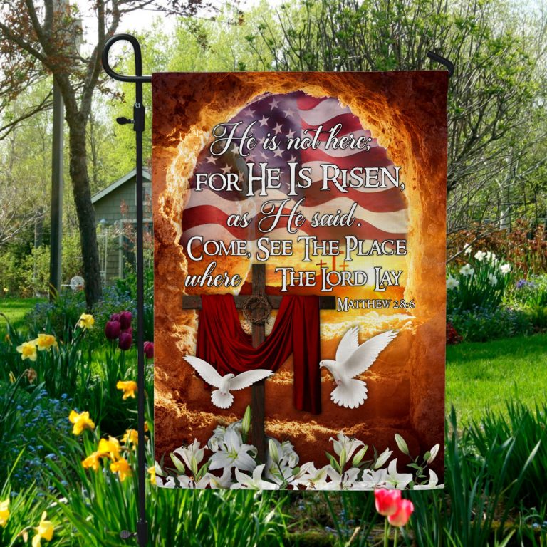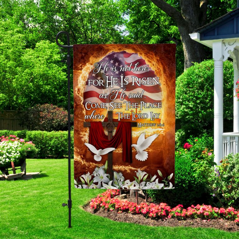 Let’s Shop He Is Not Here For He Is Risen As He Said Come See The Place Matthew 28 6 Outdoor House Flag – Home Garden Flag!