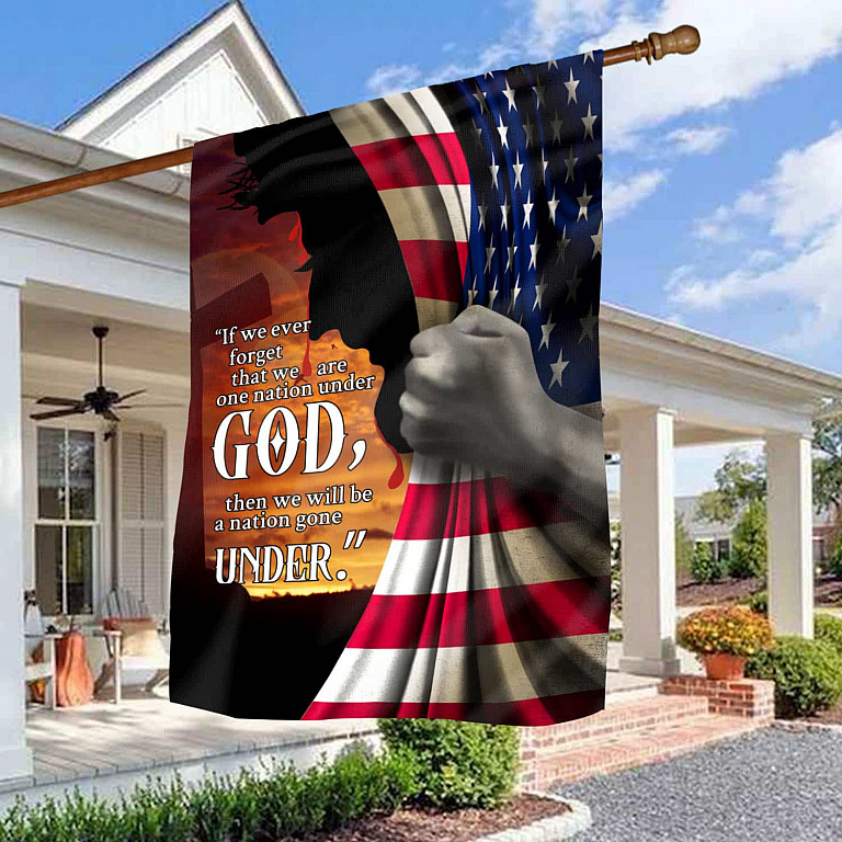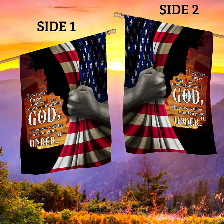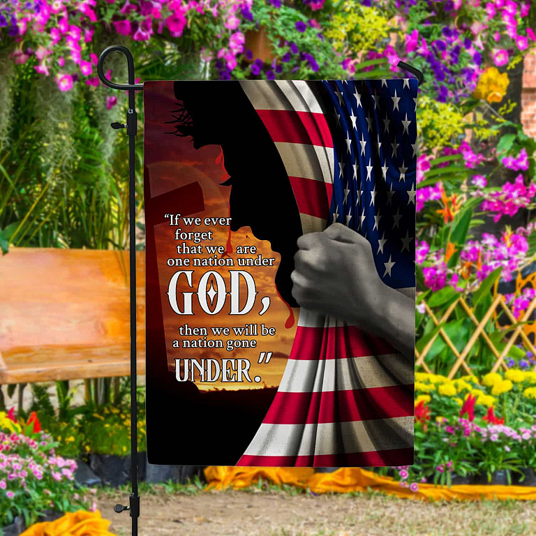 Let’s Shop If We Ever Forget That We Are One Nation Under God Jesus American Outdoor House Flag – Jesus Lover Home Garden Flag!