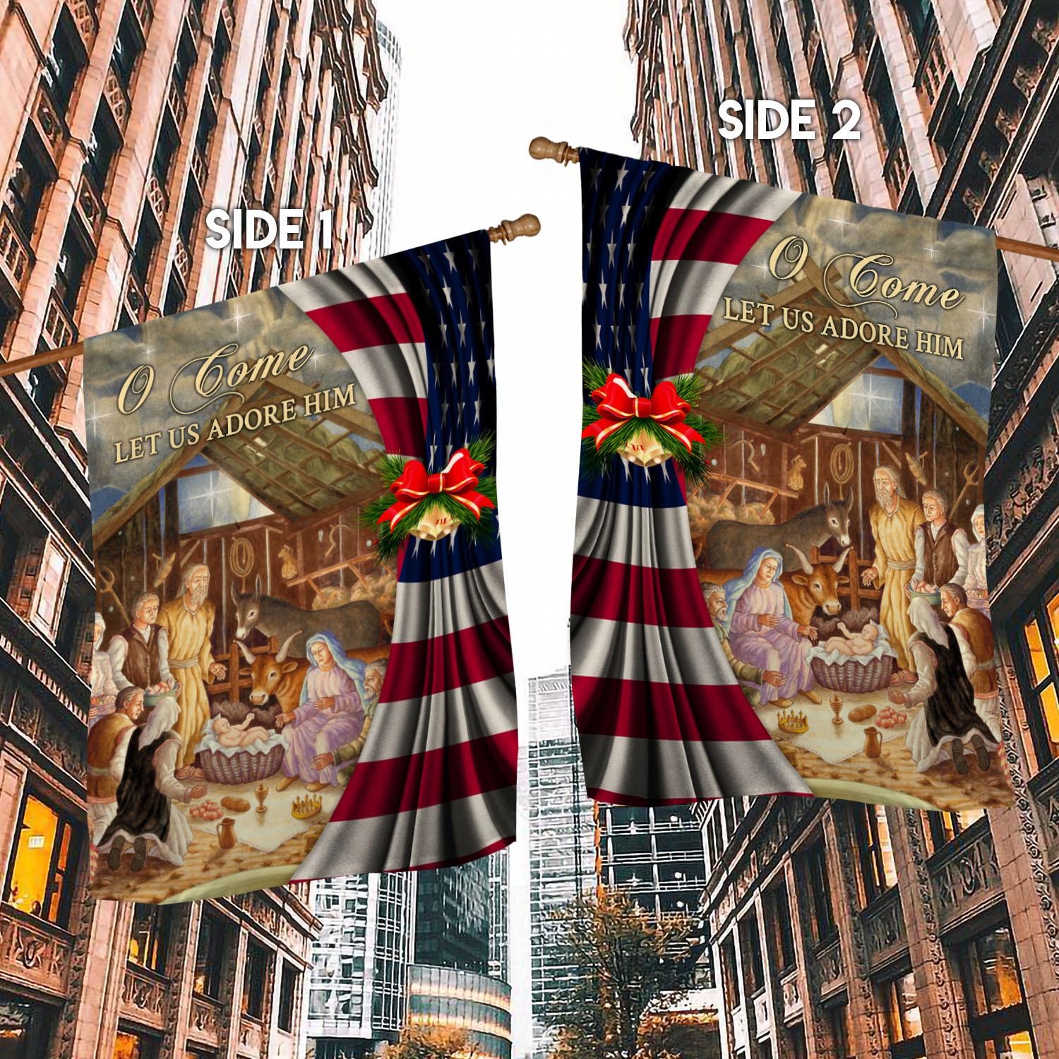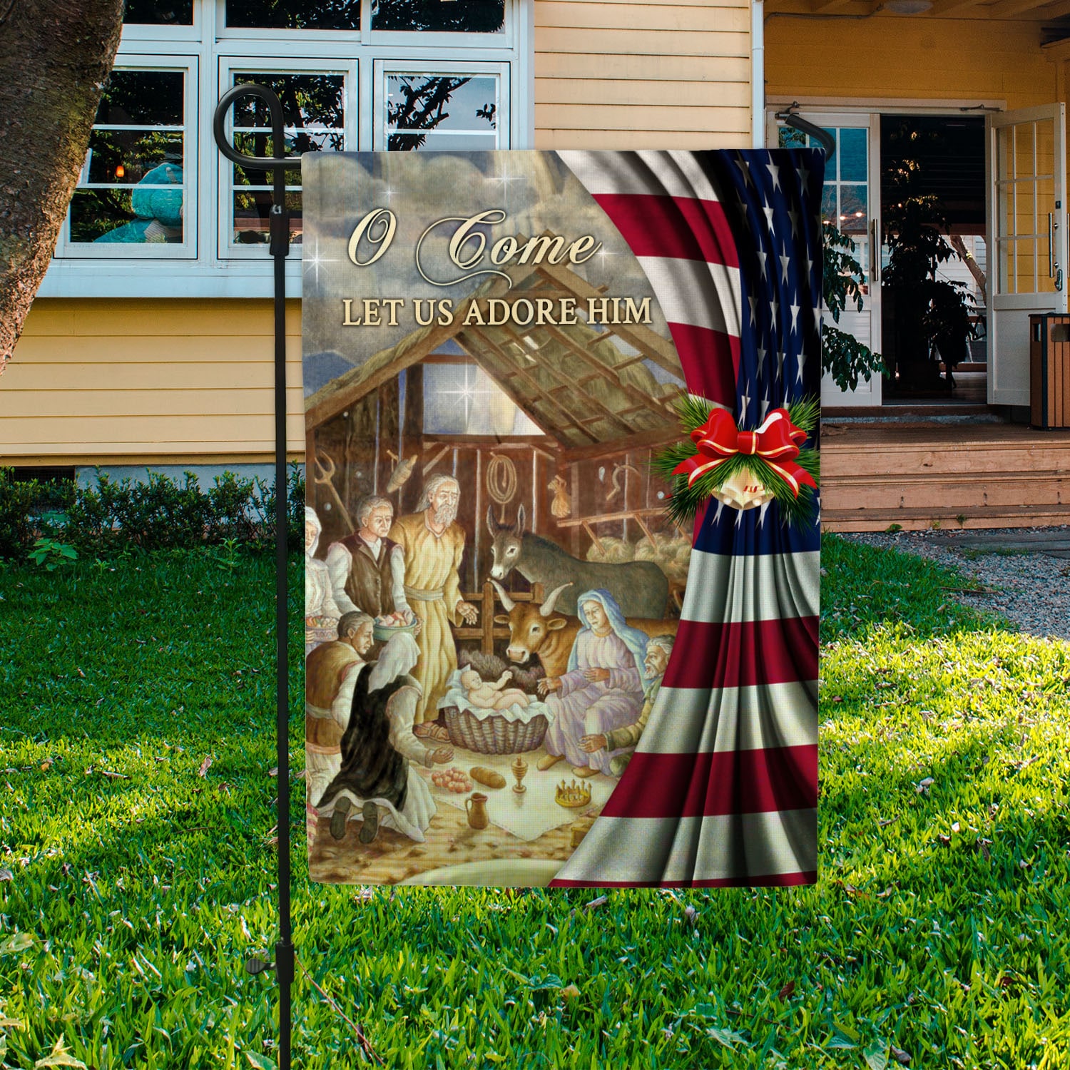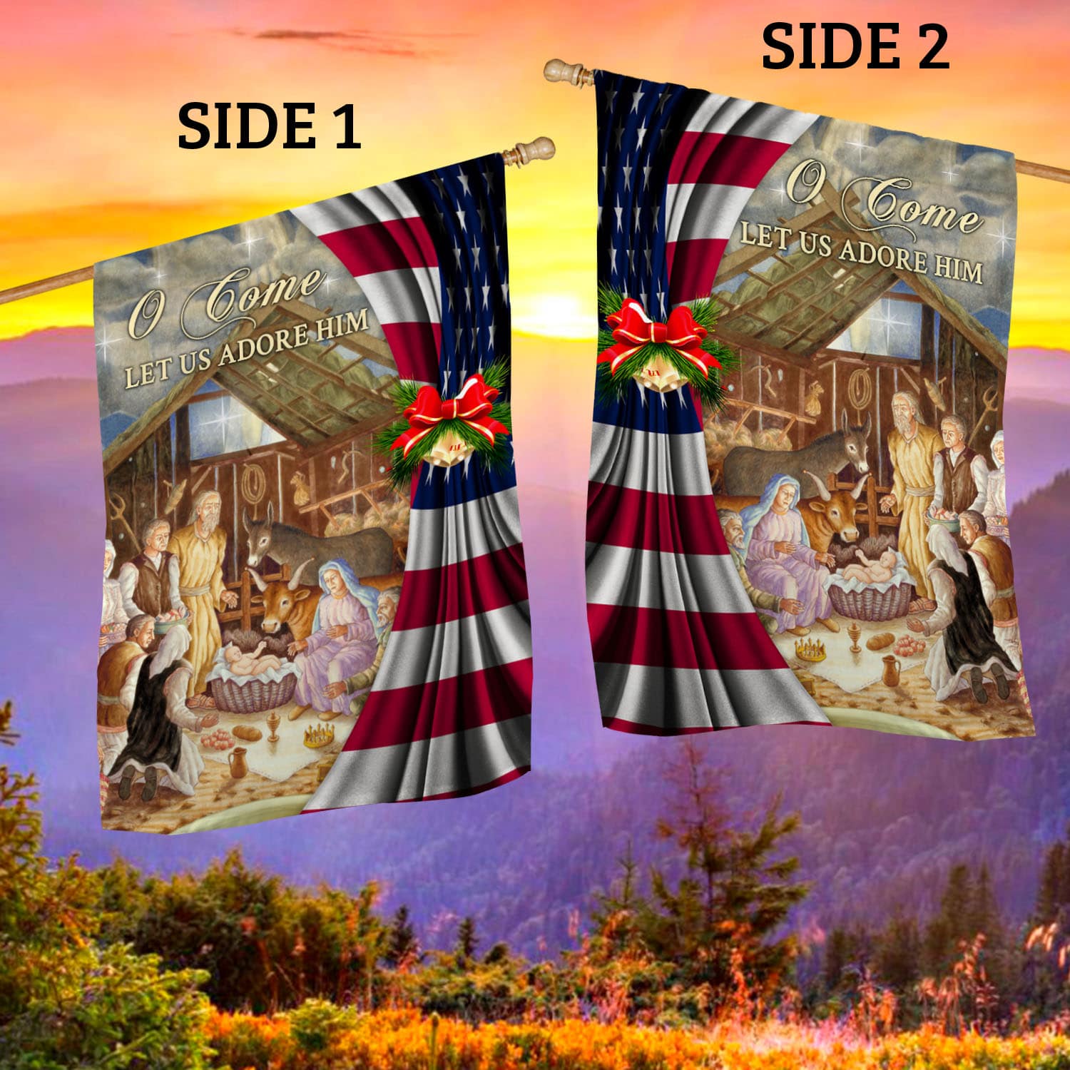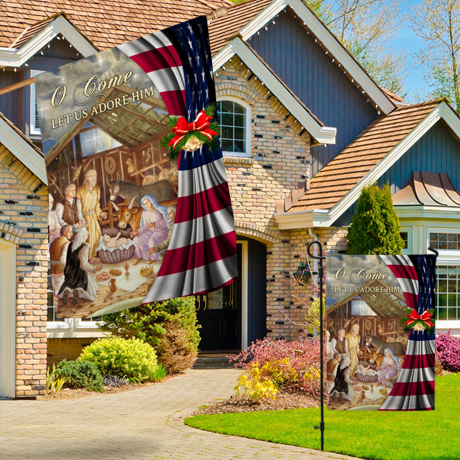 Let’s Shop O Come Let Us Adore Him Nativity of Jesus American Outdoor House Flag – Home Garden Flag!