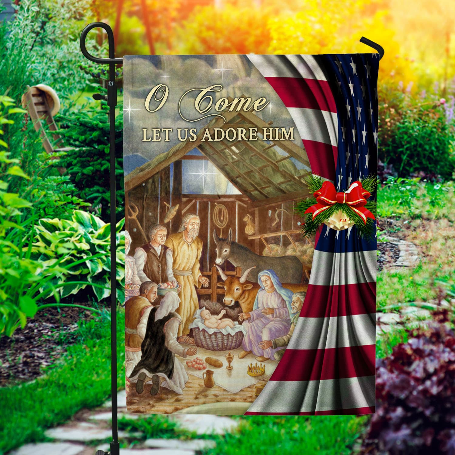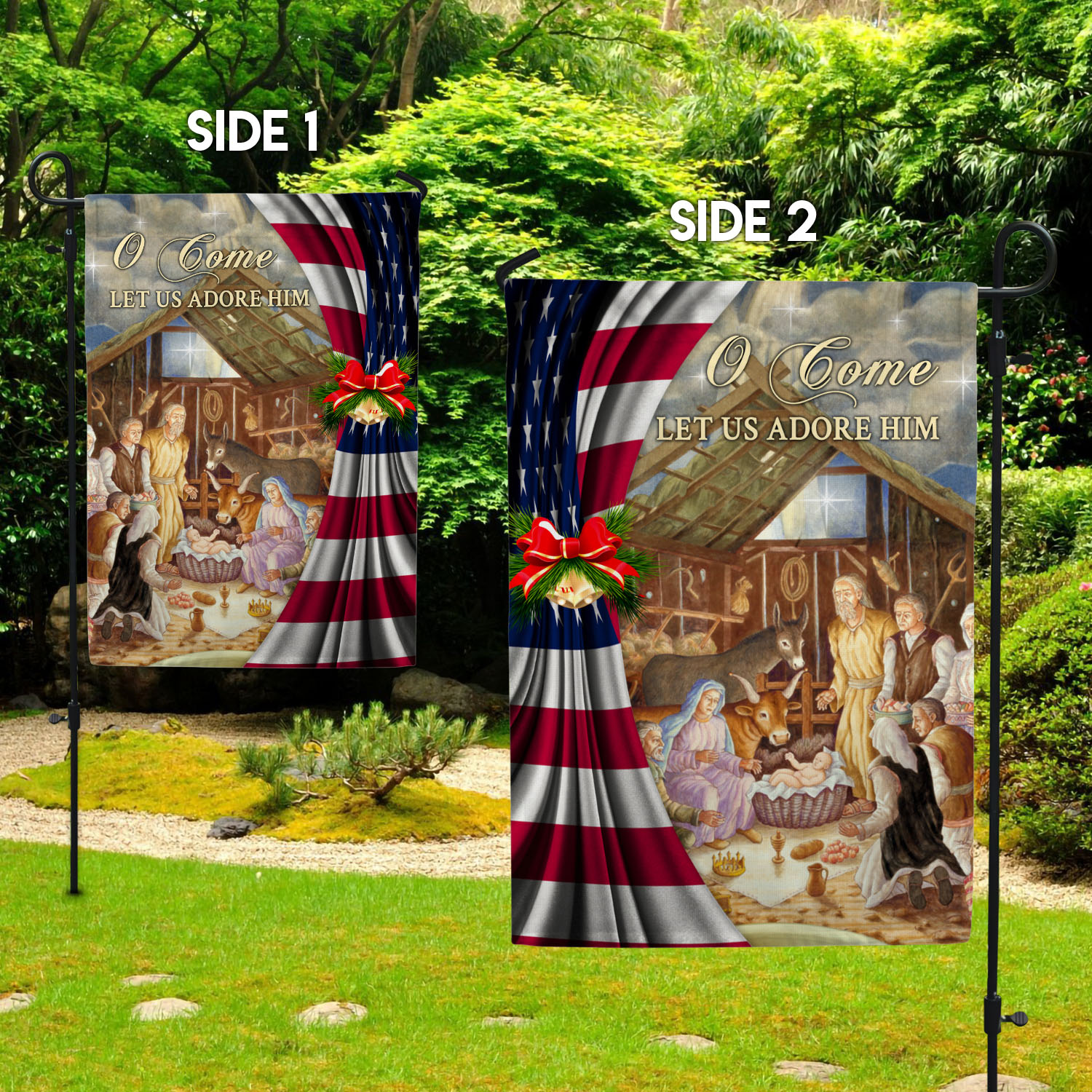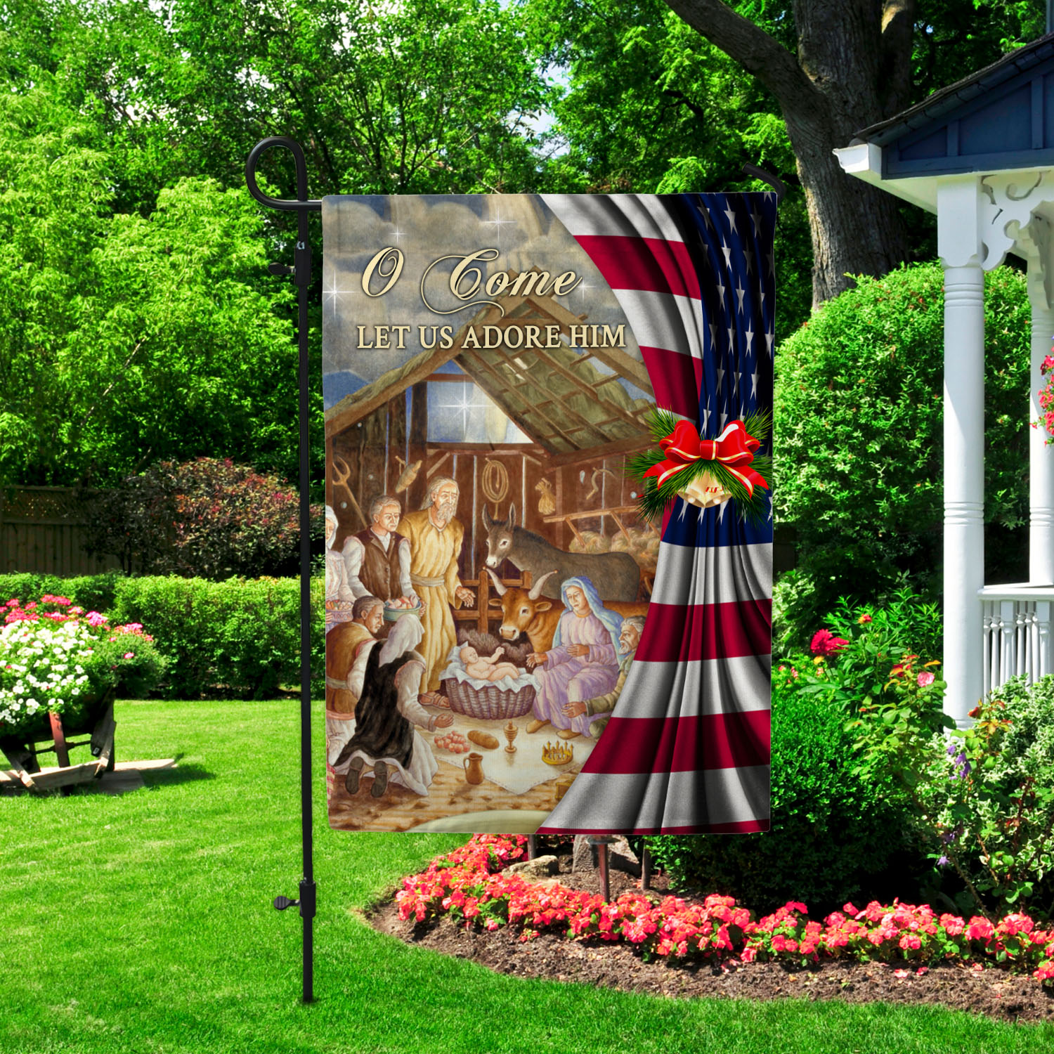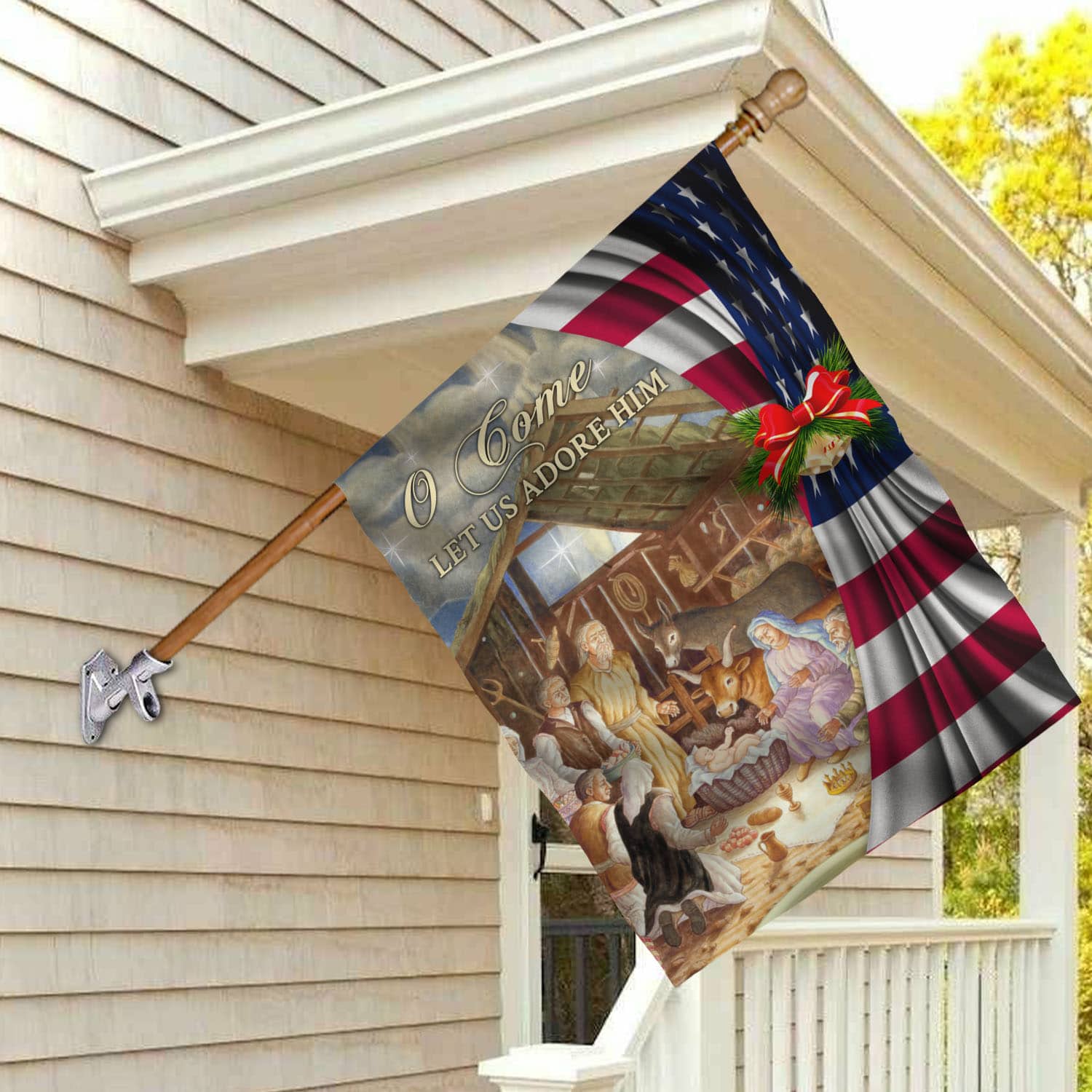 Let’s Shop O Come Let Us Adore Him Nativity of Jesus American Outdoor House Flag – Home Garden Flag!