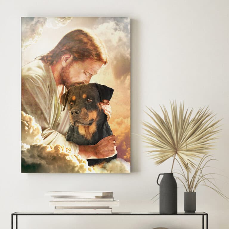 Let’s Shop Jesus Christ Canvas Wall Art – God Surrounded By Rottweiler Gift For Dog Lover Poster Canvas Wall Art House Decor!