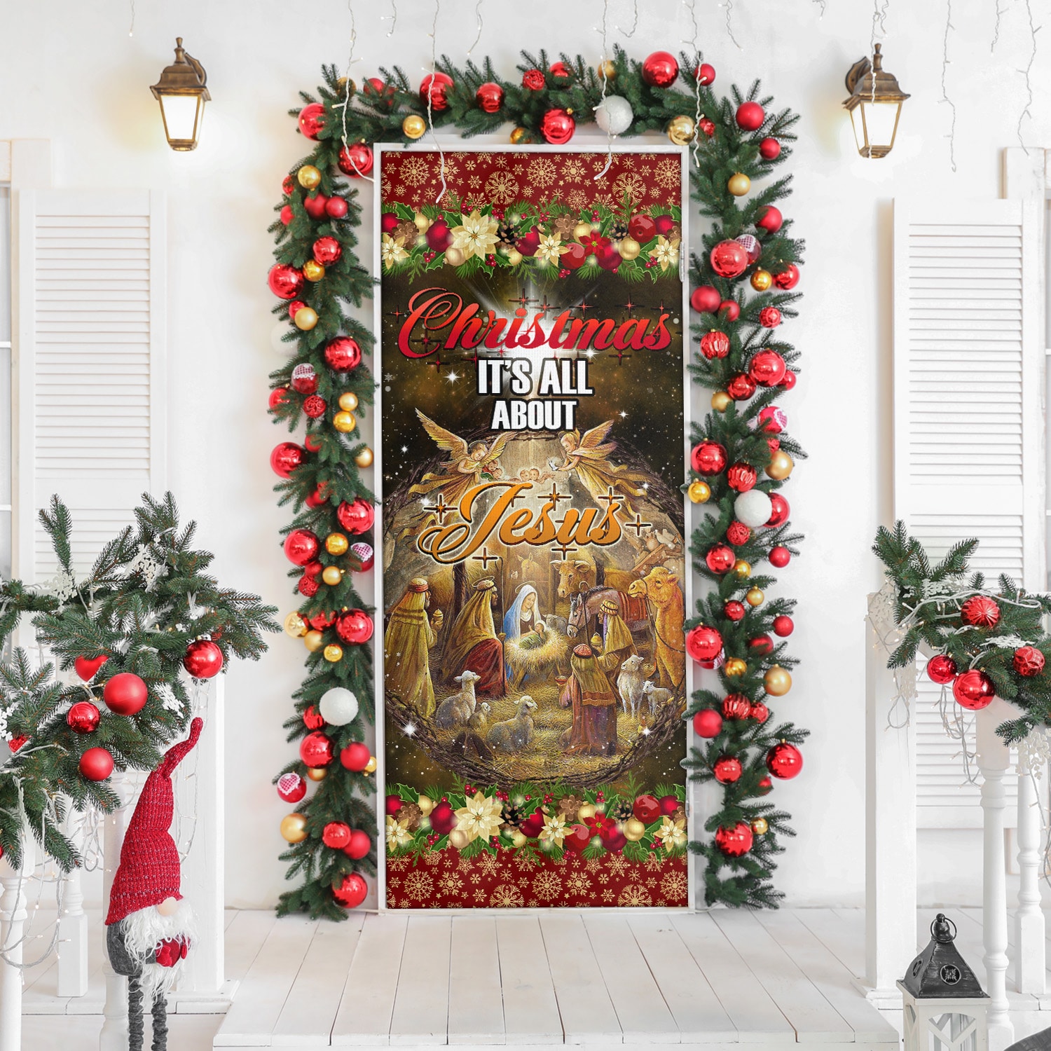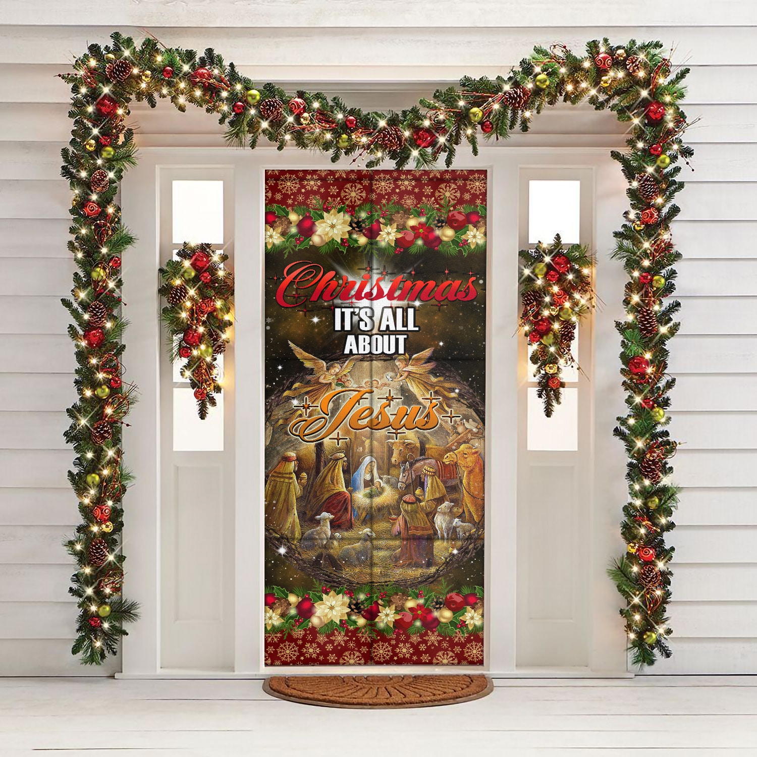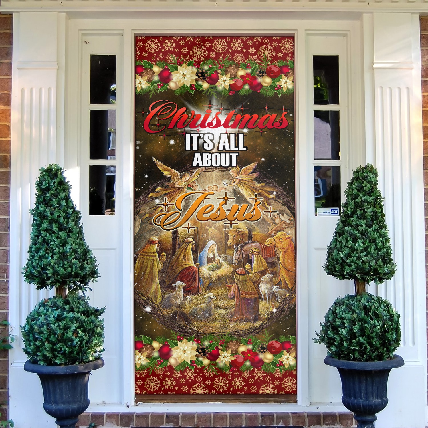 Let’s Shop Christmas It’s All About Jesus Merry Christmas Decorative Door Cover – Xmas Door Decoration!