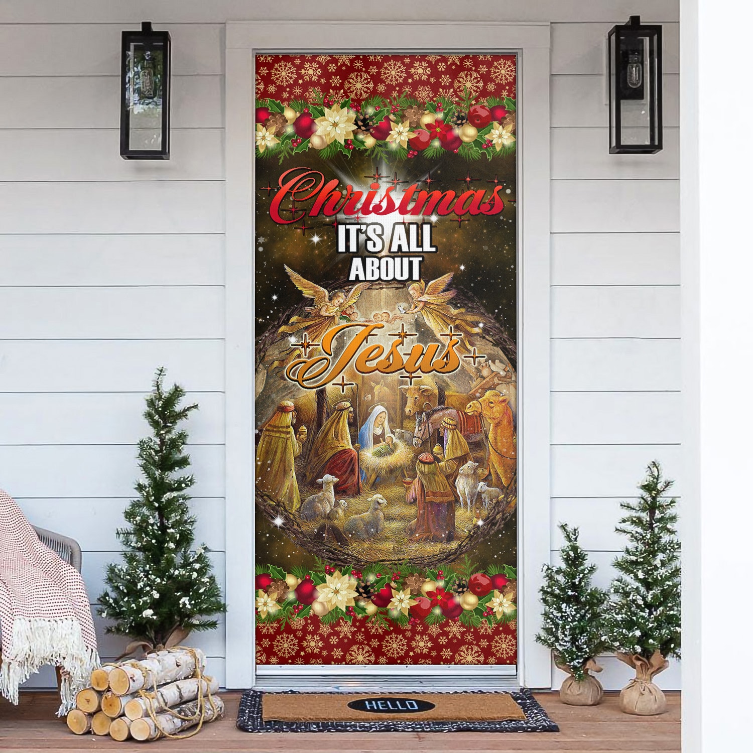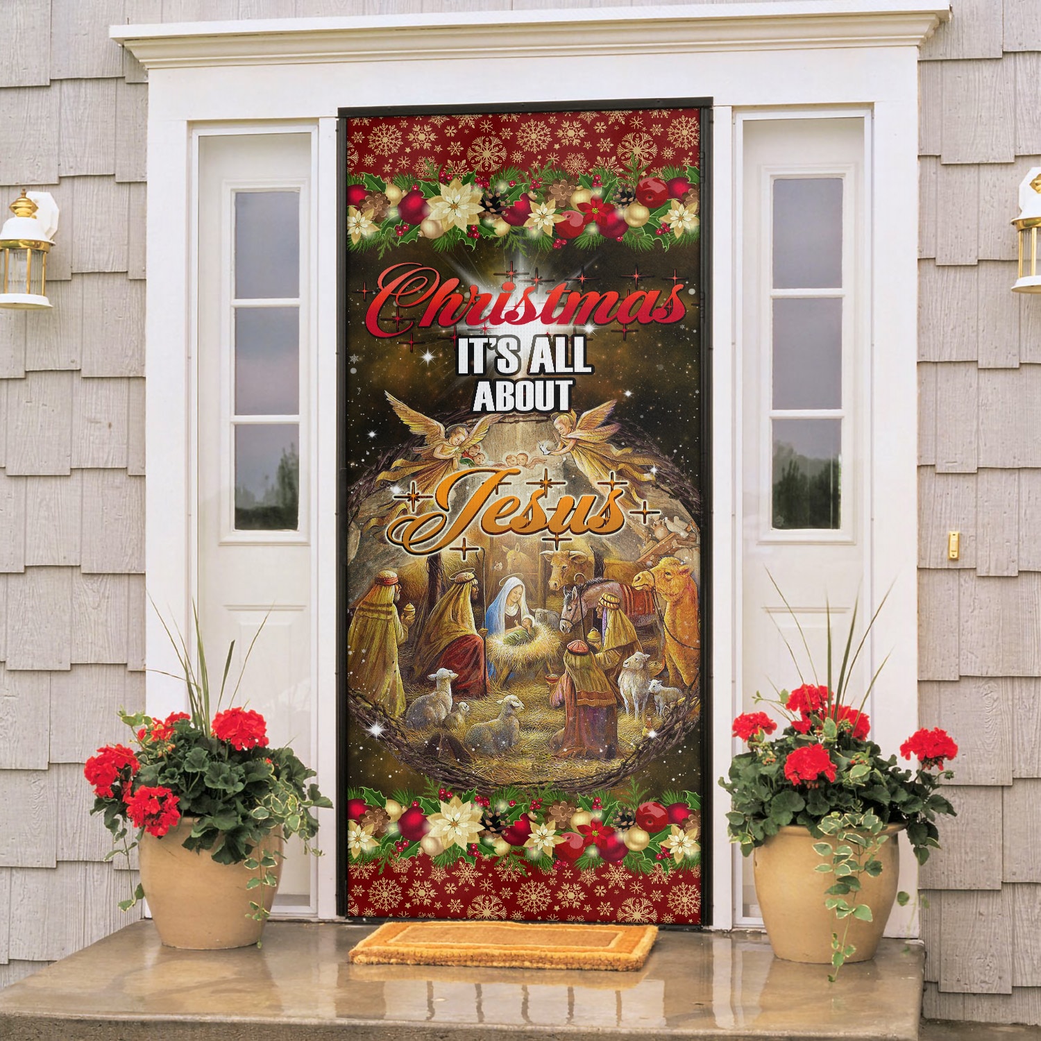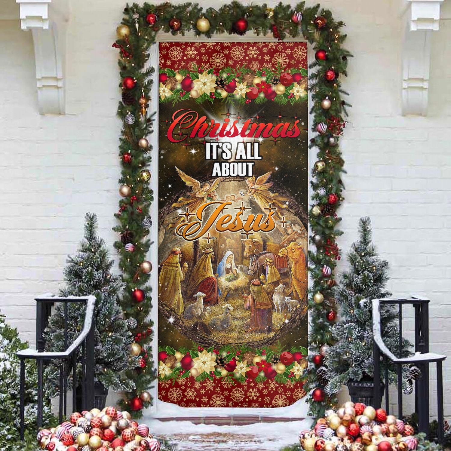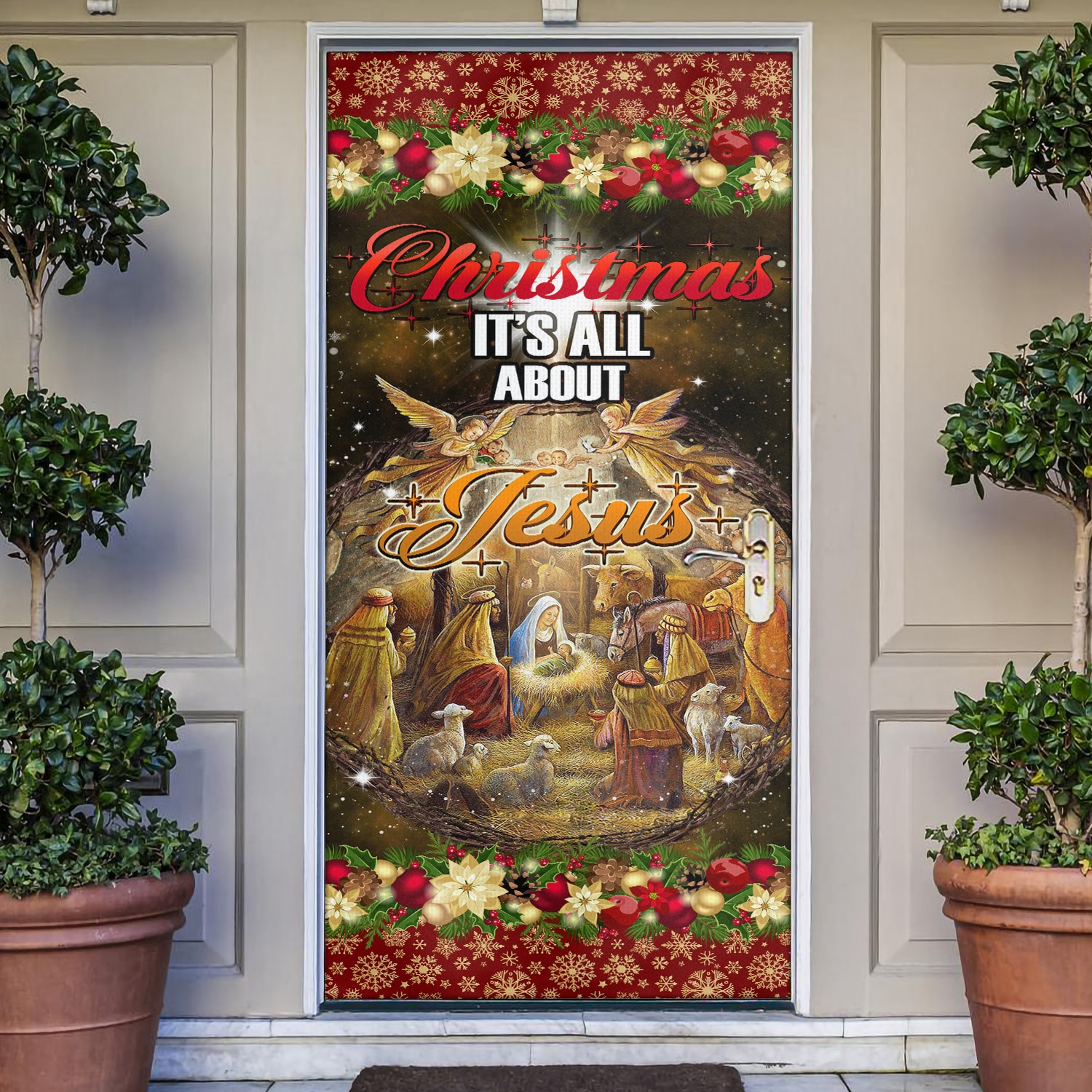 Let’s Shop Christmas It’s All About Jesus Merry Christmas Decorative Door Cover – Xmas Door Decoration!