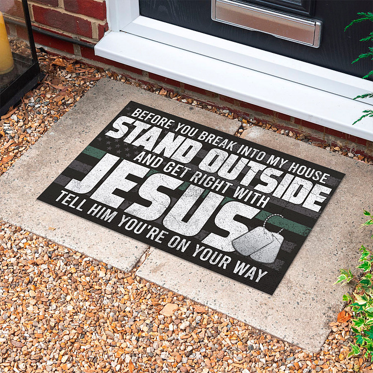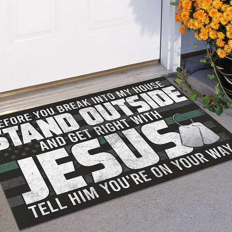 Are you spending too much time to find creative merchandise for you or suitable & special gifts for your mommy, your daddy, your son, your daughter, your children, your friends or someone you love? The struggle is over because we have various Before You Break into My House Stand Outside and Get Right with Jesus, Door Mat Before You Break into My House Stand Outside, Funny Jesus Door Mat, Jesus Doormat, Get Right with Jesus Doormat, Stand Outside and Get Right with Jesus Doormat which will make perfect presents for your beloveds. In order to make your present stand out, we have created lots of unique and awesome customized photo gifts & personalized designs.