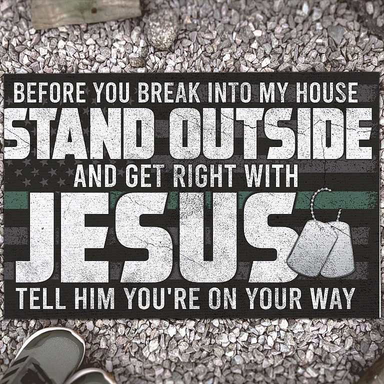 Let’s Shop Before You Break Into My House Stand Outside And Get Right With Jesus Green Line US Flag Outdoor House Doormat!