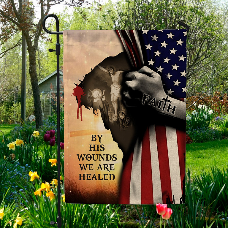 Let’s Shop Christian Cross by His Wounds We Are Healed Garden Flag – House Flag – Wall Flag – Jesus Flag!
