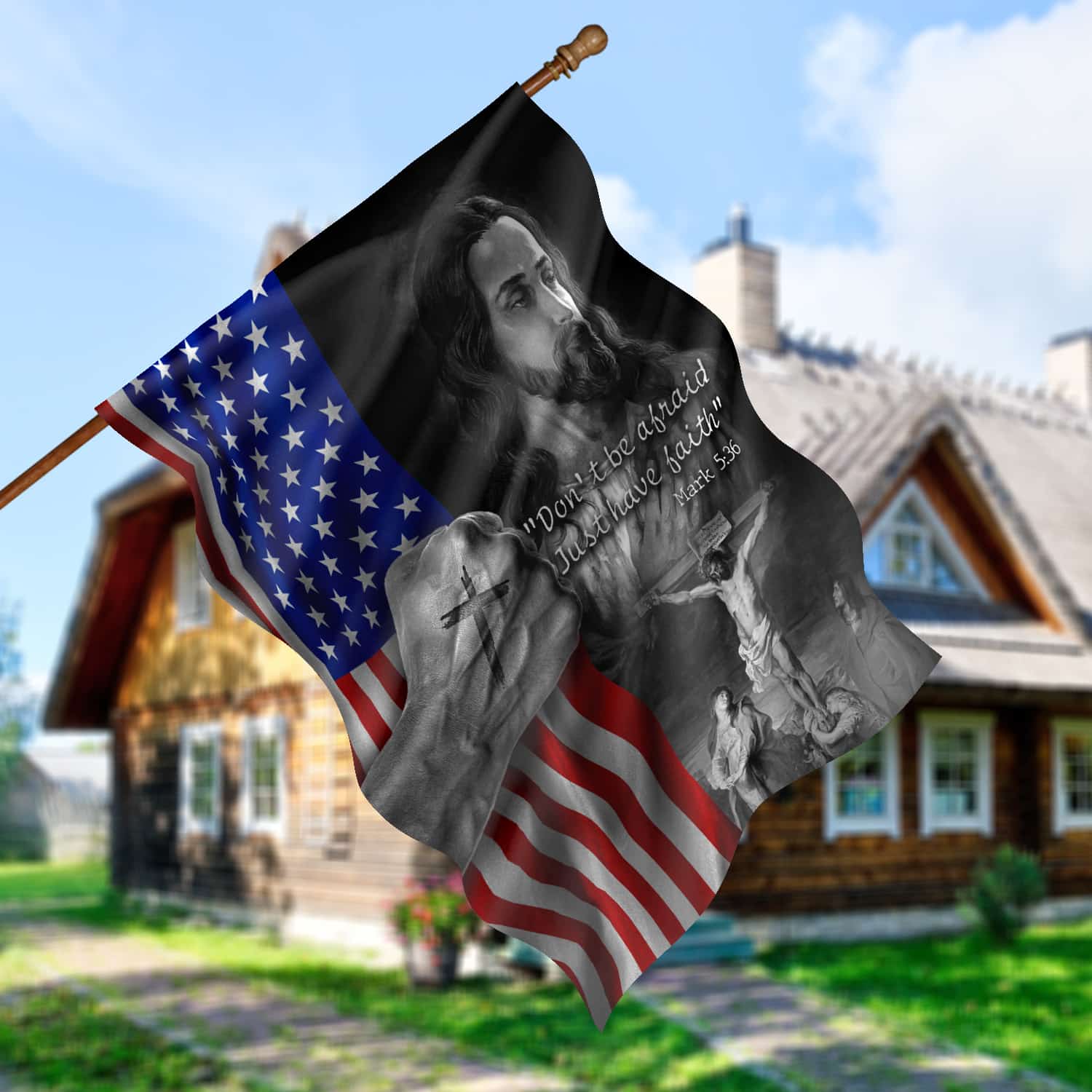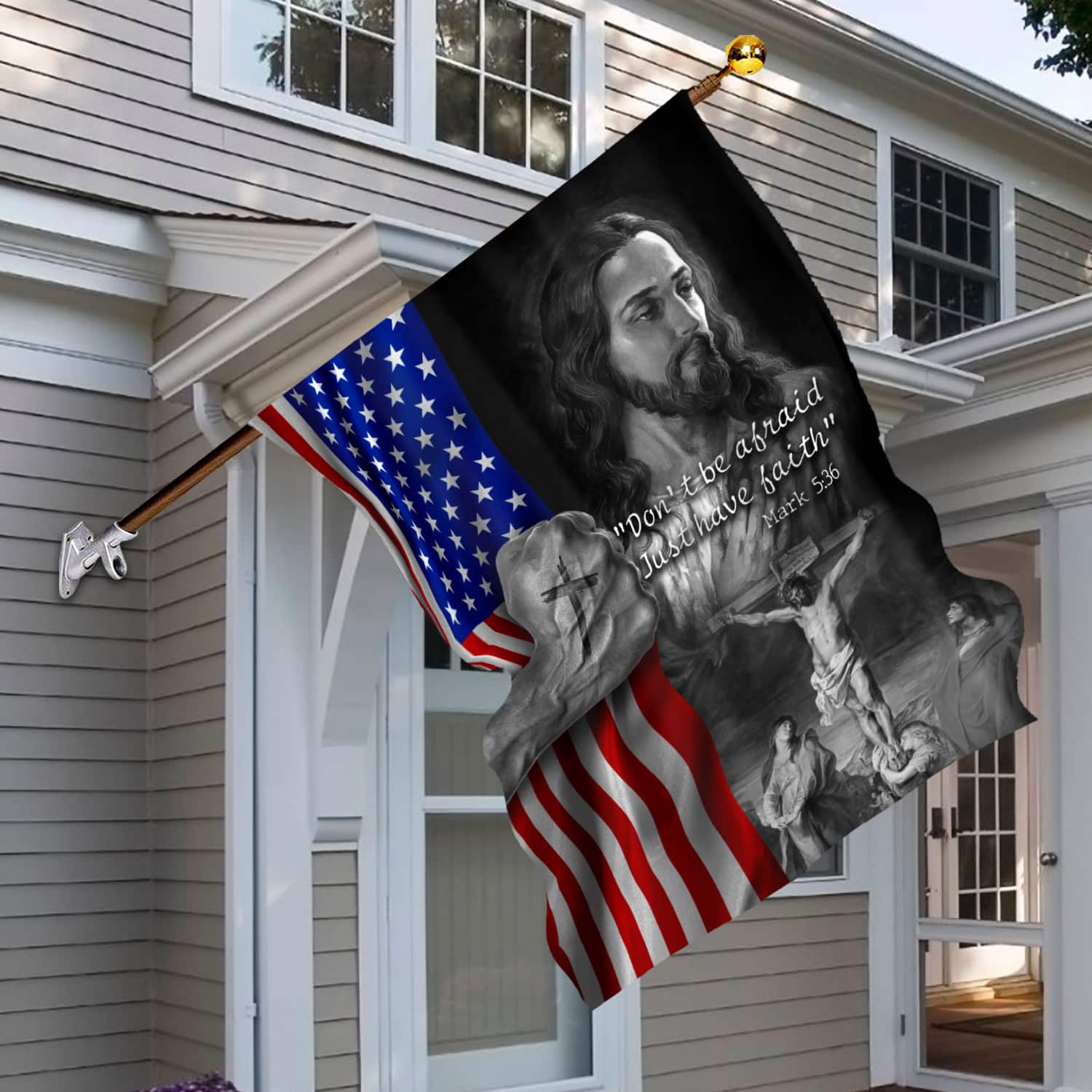 Let’s Shop Jesus American Flag Don’t Be Afraid Just Have Faith Mark 5 36 Christian Cross Religious House Flags!