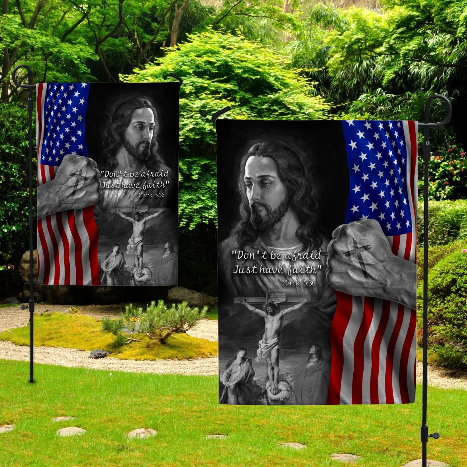 Are you spending too much time to find creative merchandise for you or suitable & special gifts for your mommy, your daddy, your son, your daughter, your children, your friends or someone you love? The struggle is over because we have various Christian Cross, Christian Flag, Have Faith, Mark 5 36, Jesus Flag, Dont Be Afraid Bible Verse, Gods Flag, Jesus American Flag, Christian American Flag, Christian Garden Flag, Don’t Be Afraid Just Have Faith, Christian Cross Flag, Faith Over Fear Flag, Have Faith Not Fear, Religious House Flags, Hand Pulling Flag, Proud American Christian Flag, Jesus Garden Flag, Jesus Loves You Flag, Faith American Flag, Faith Over Fear Garden Flag, Christian Flag Prayer, Religious Yard Flags which will make perfect presents for your beloveds. In order to make your present stand out, we have created lots of unique and awesome customized photo gifts & personalized designs.