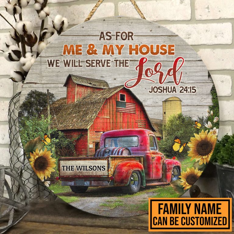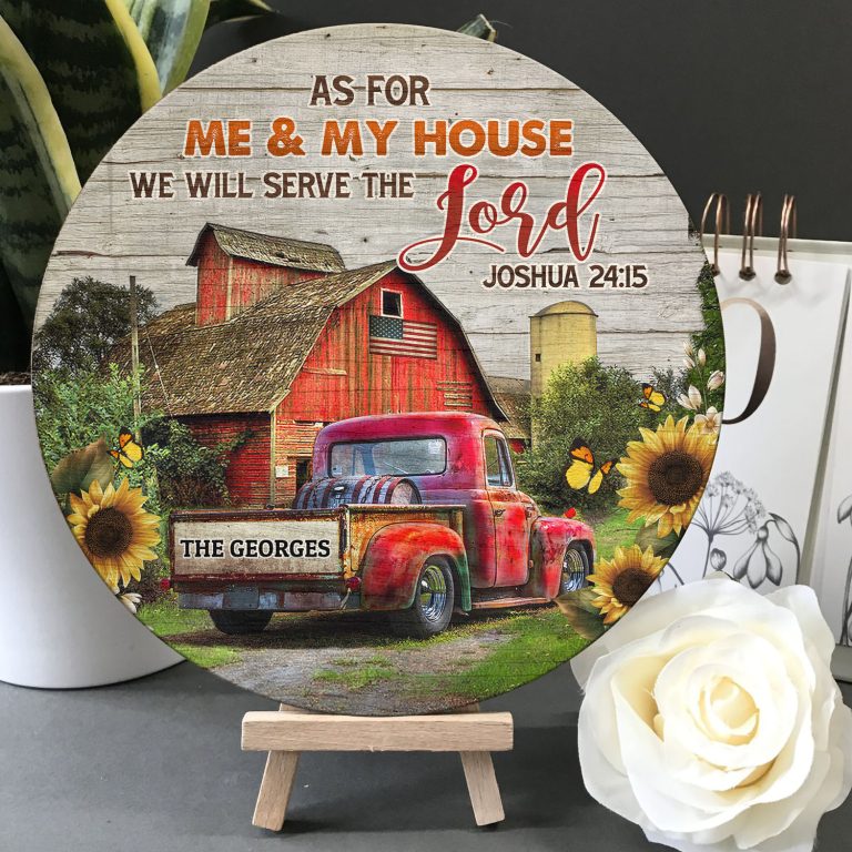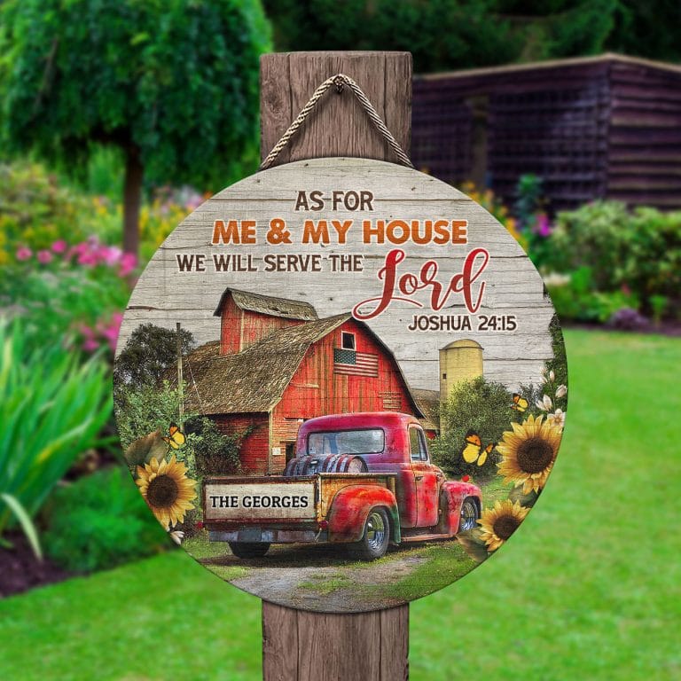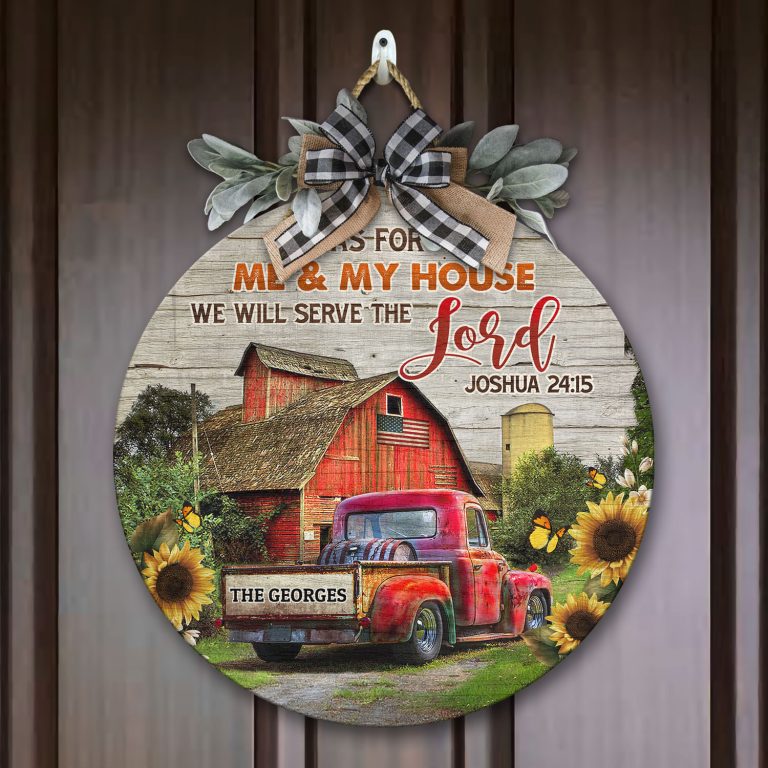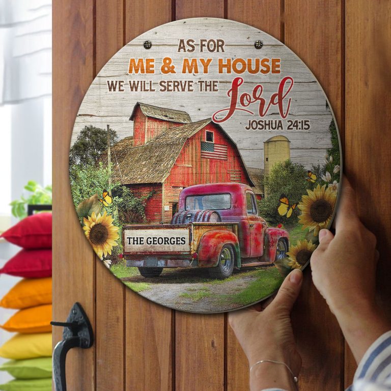 Let’s Shop Custom Family Name Sign as For Me and My House We Will Serve the Lord Decorative Circle Wooden Door Sign – Front Porch Sign Decor Farmhouse!