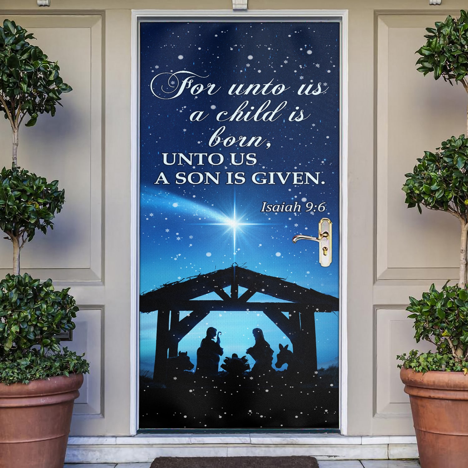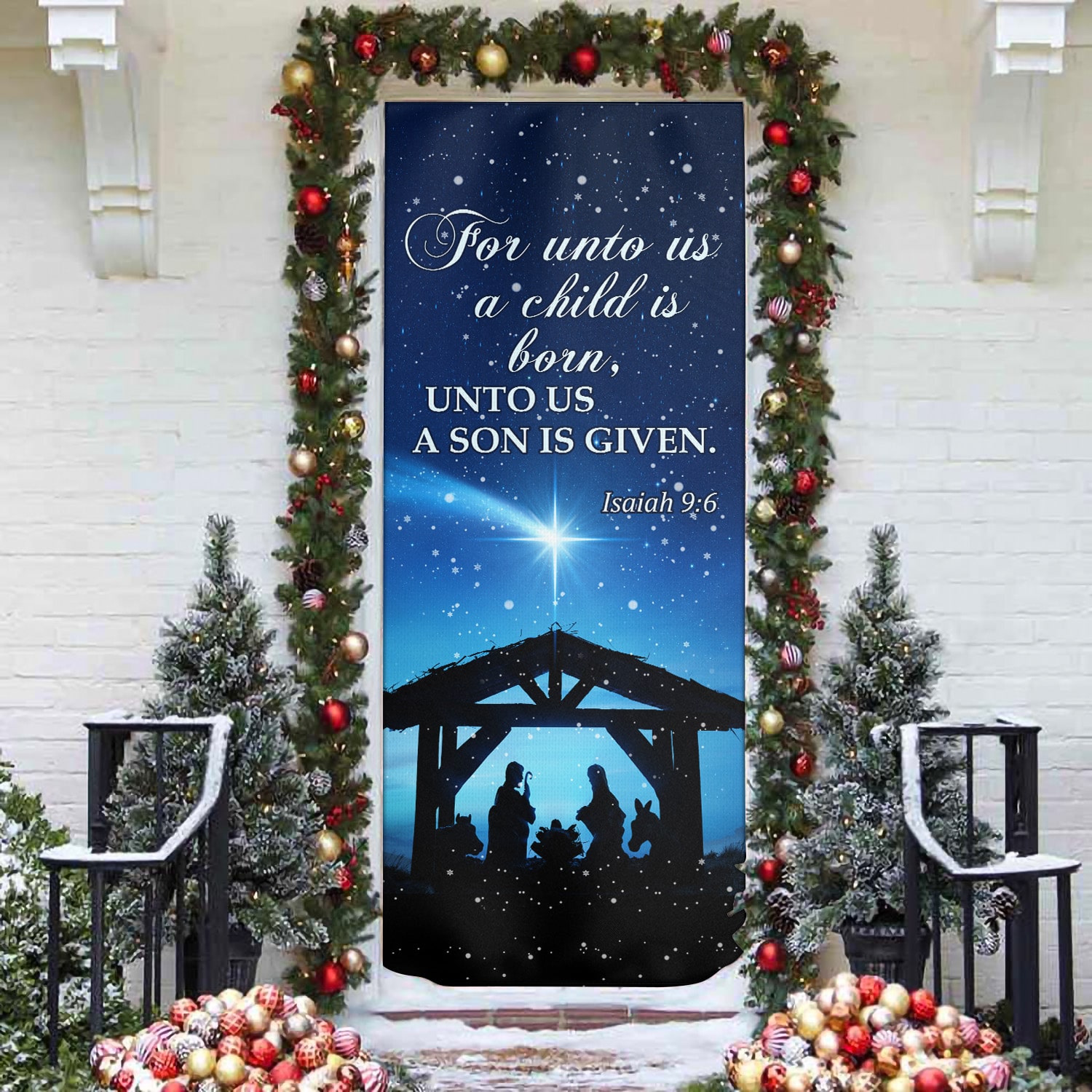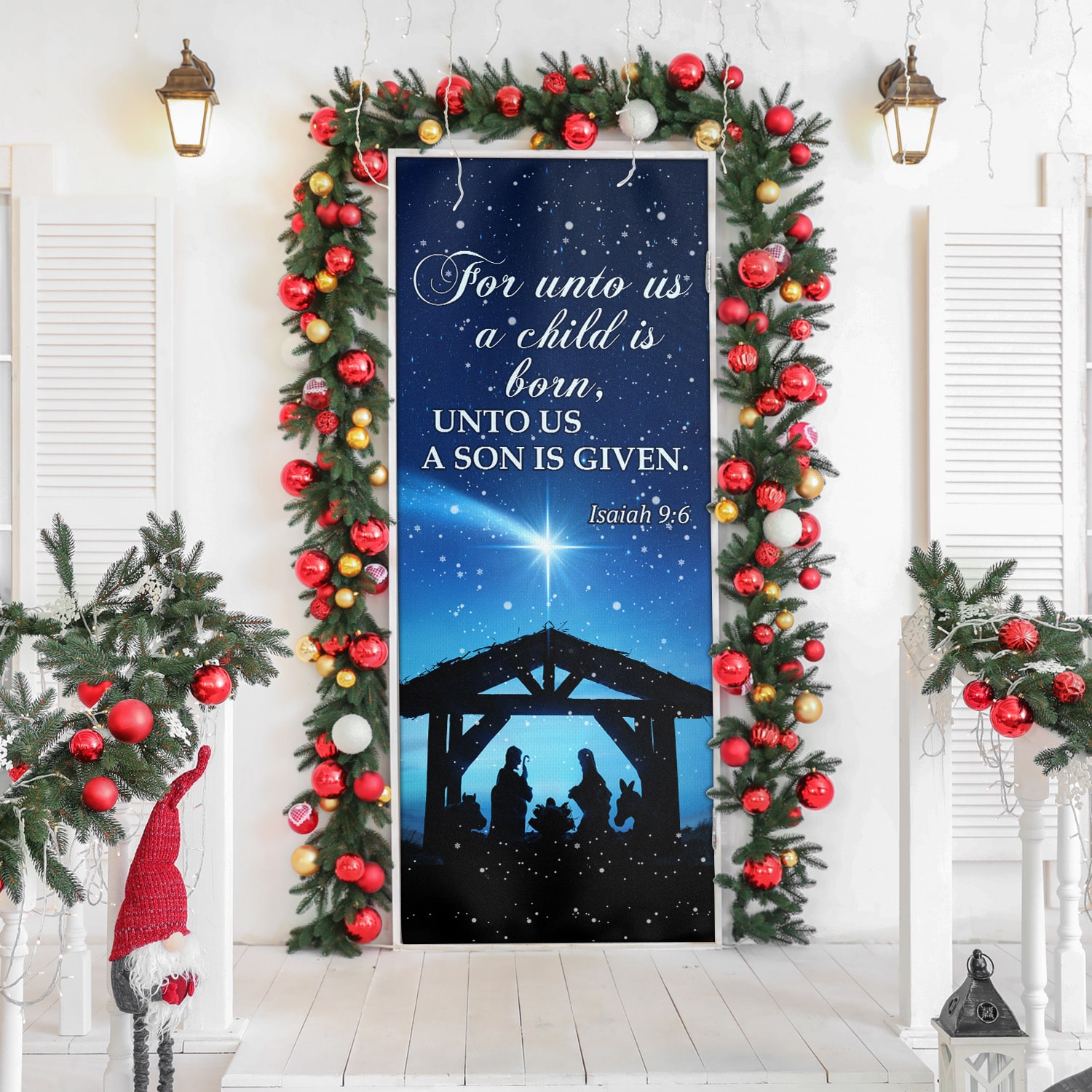 Let’s Shop For Unto Us A Child Is Born Unto Us A Son Is Given Printed Door Cover – Christmas Farm Door Cover!
