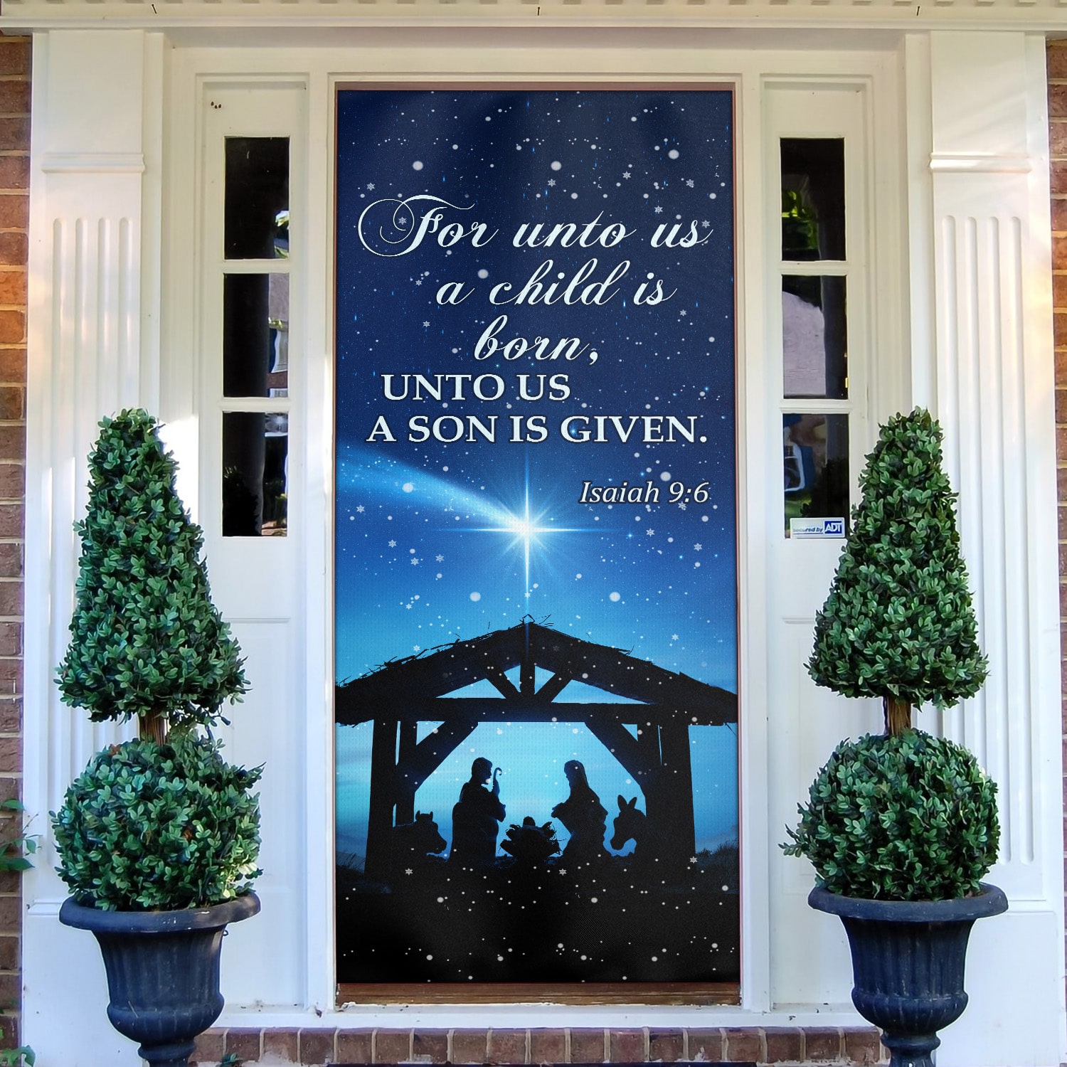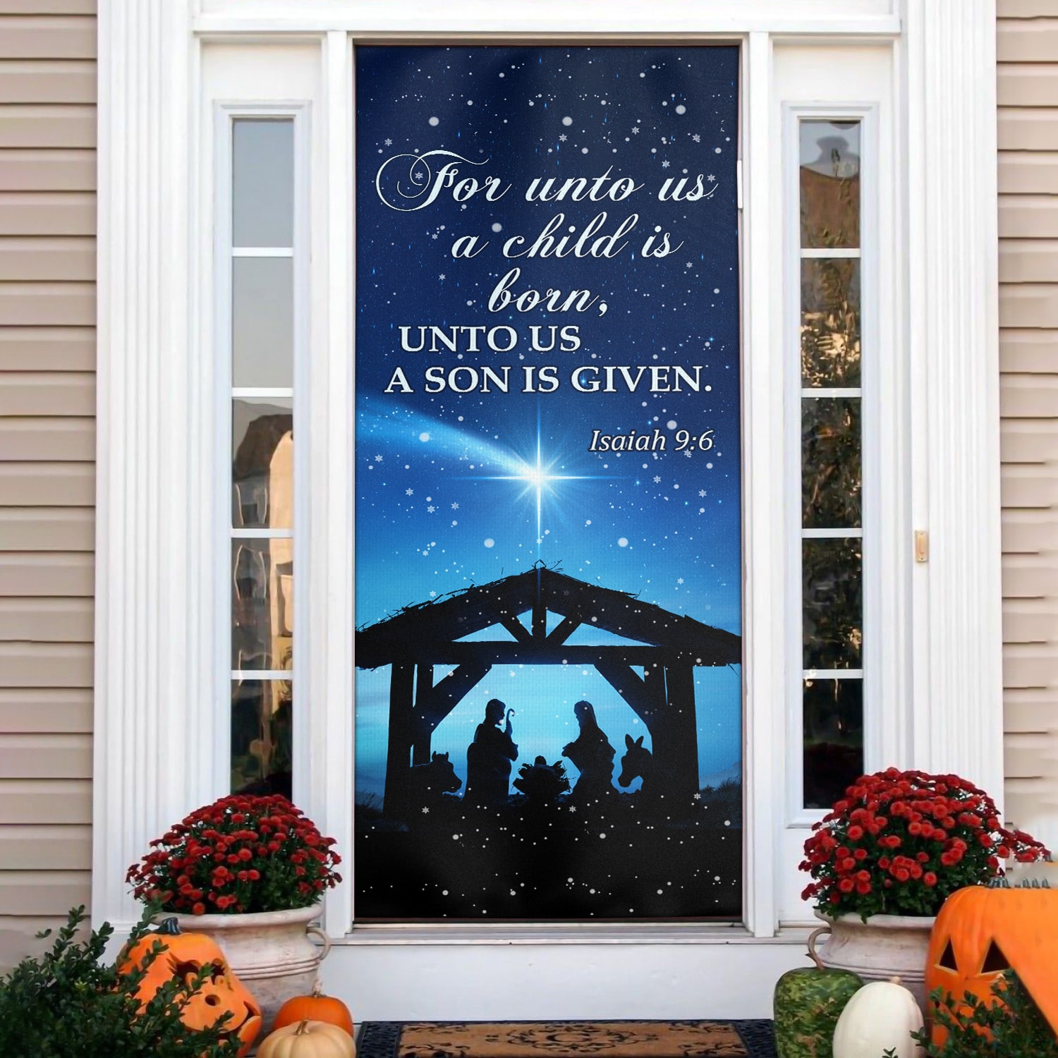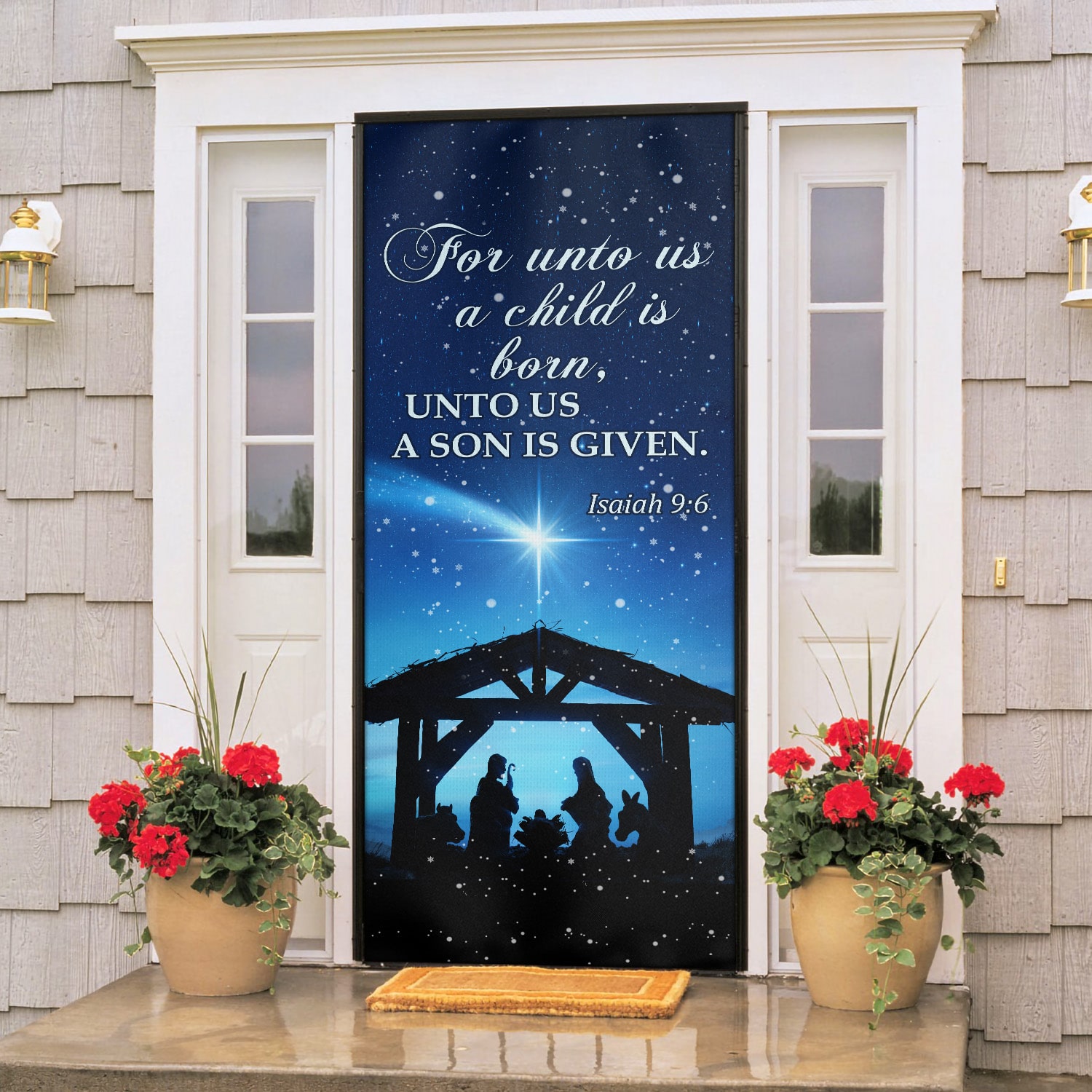 Let’s Shop For Unto Us A Child Is Born Unto Us A Son Is Given Printed Door Cover – Christmas Farm Door Cover!