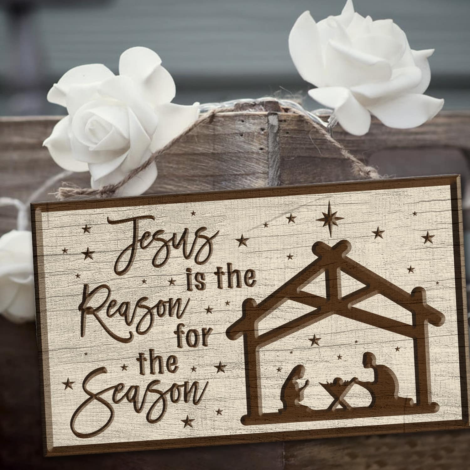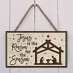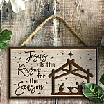 Let’s Shop Jesus Is the Reason for the Season Christmas Decorative Rectangle Wooden Door Sign-Front Porch Sign Indoor Outdoor Decor!