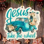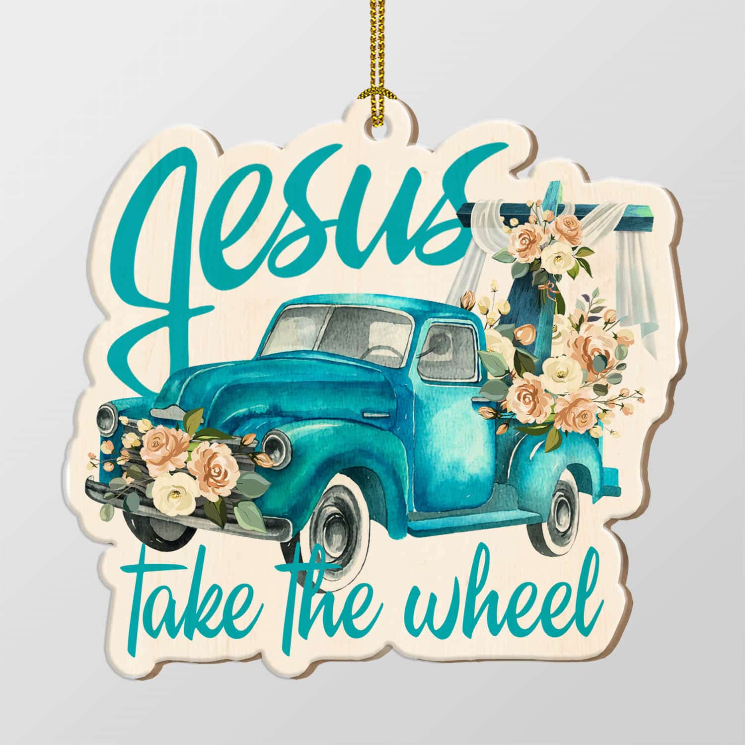 Let’s Shop Vintage Blue Car Truck Jesus Take The Wheel Custom Shaped Christmas Ornament – Christmas Gift for Christian!