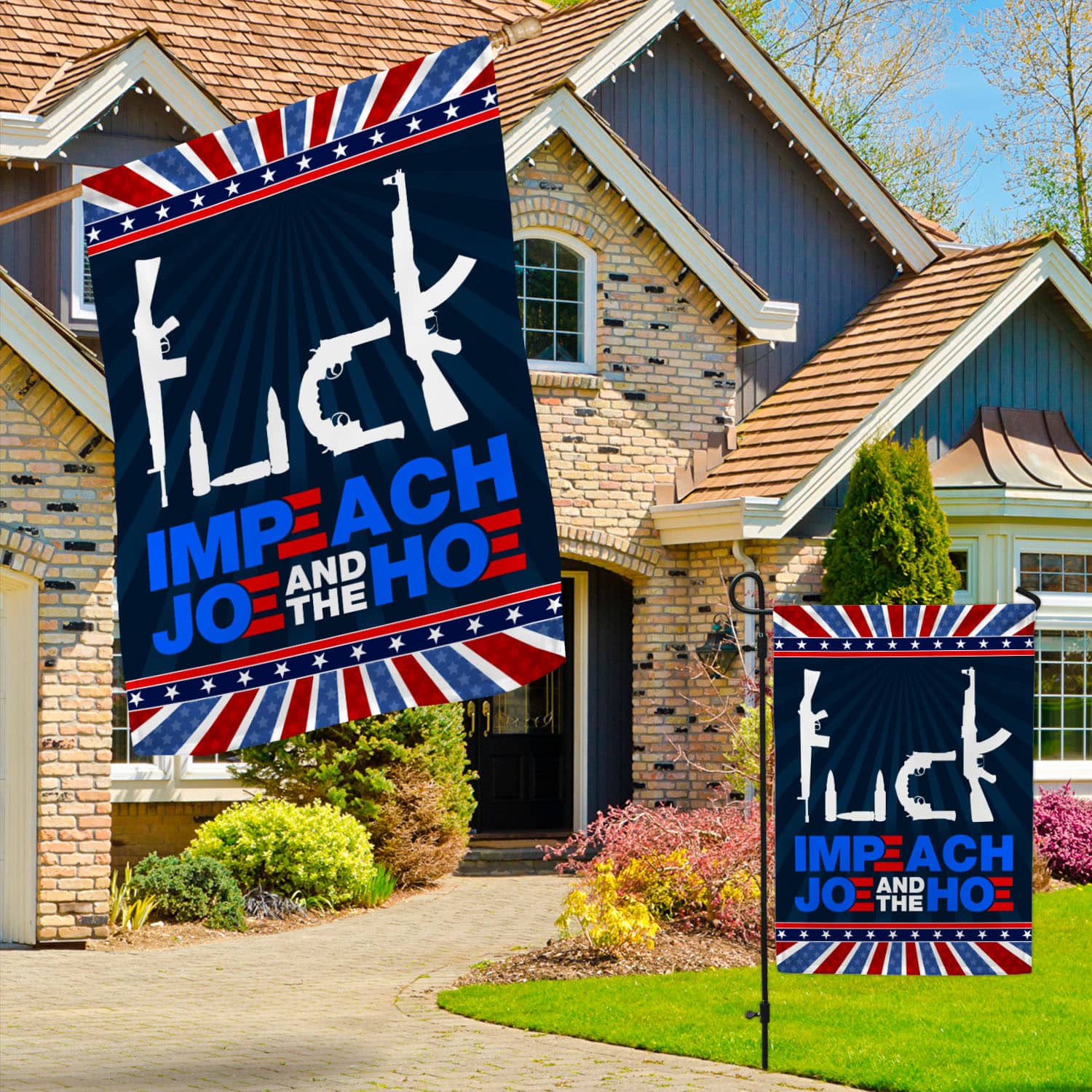 Let’s Shop Fuck Impeach Joe And The Hoe Garden Flag – Anti Joe Biden House Flag – Funny Political Flag!