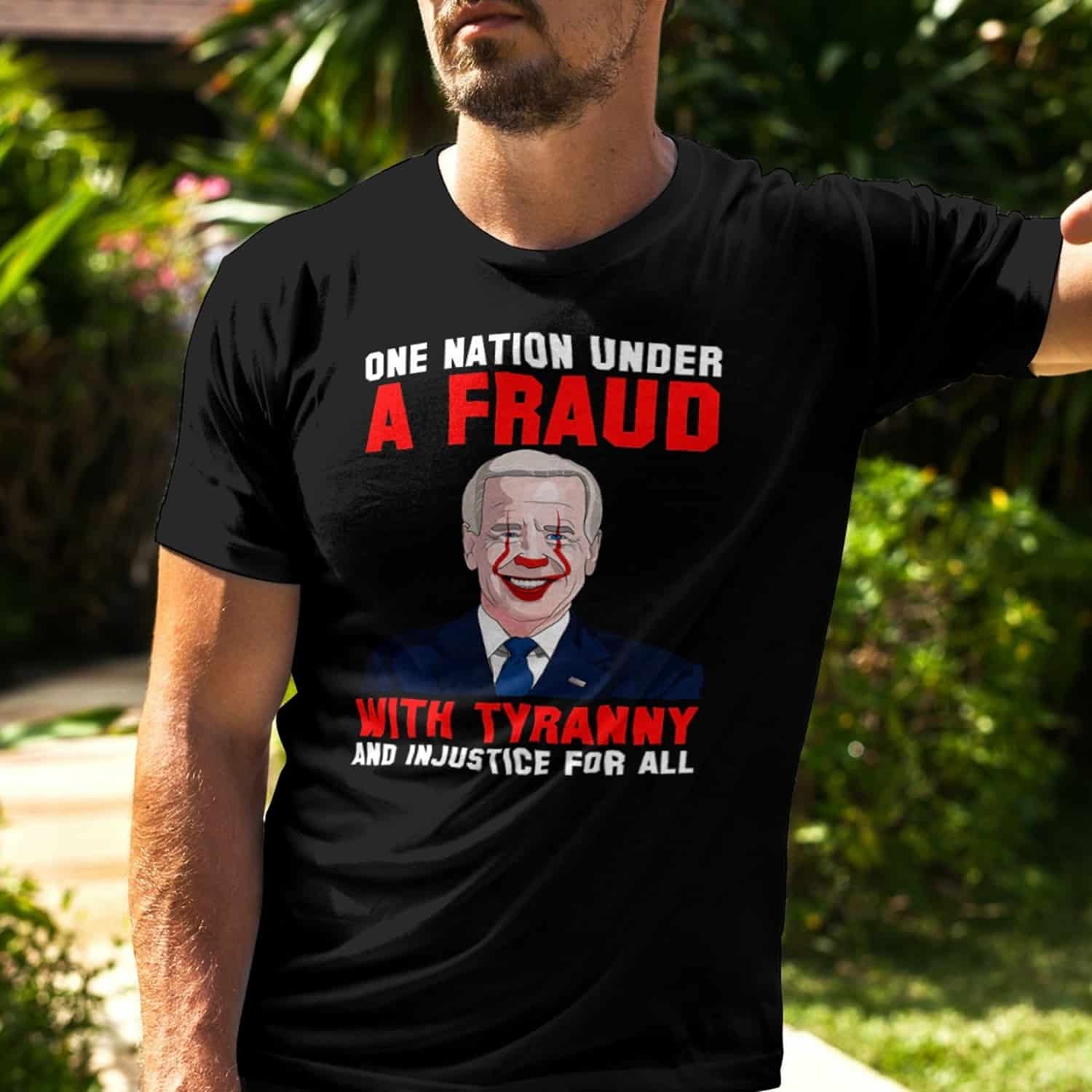 Biden One Nation Under A Fraud With Tyranny And Injustice For All T-shirt – Anti Biden Is A Clown Shirt Funny