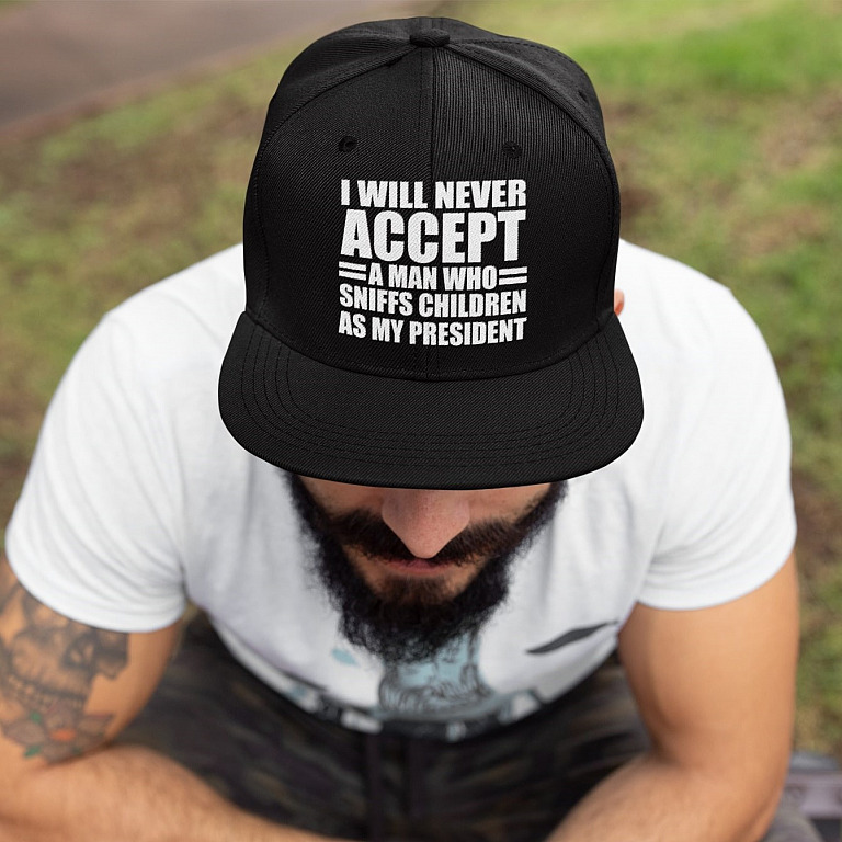 Let’s Shop I Will Never Accept A Man Who Sniffs Children As My President Anti Biden Twill Cap – Snapback Hat – Trucker Hat!