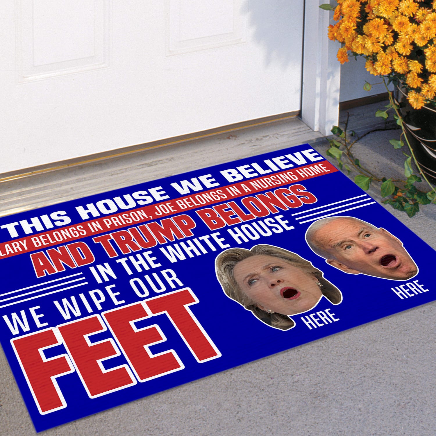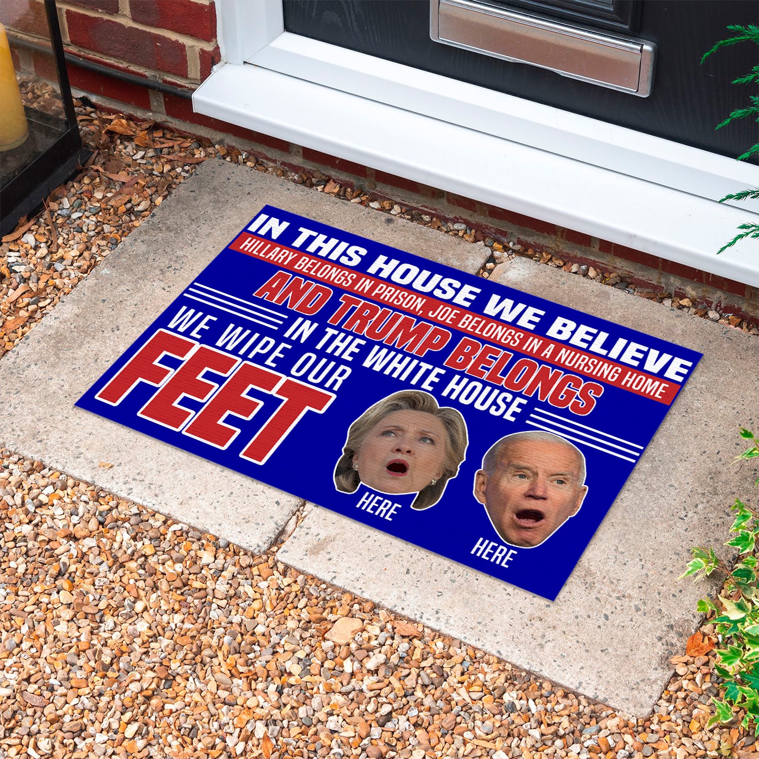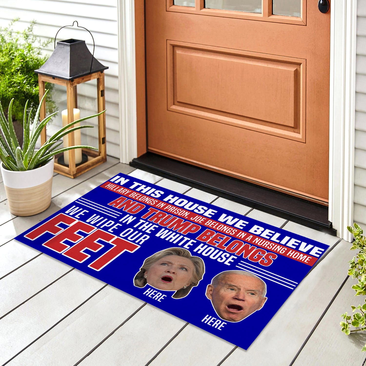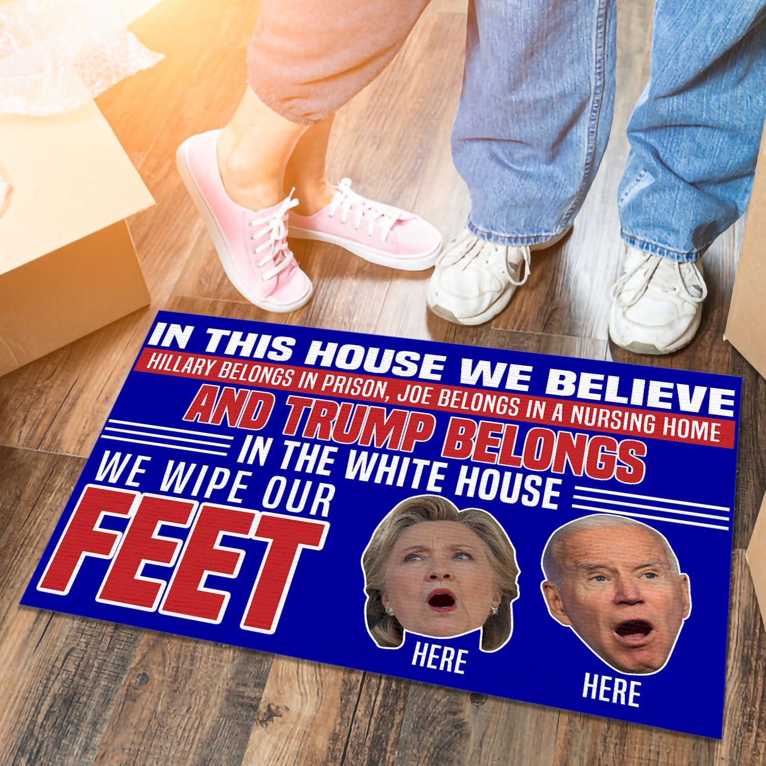 Let’s Shop In This House We Believe Hillary in Prison Joe in A Nursing Home Trump White House Indoor Outdoor Doormat!