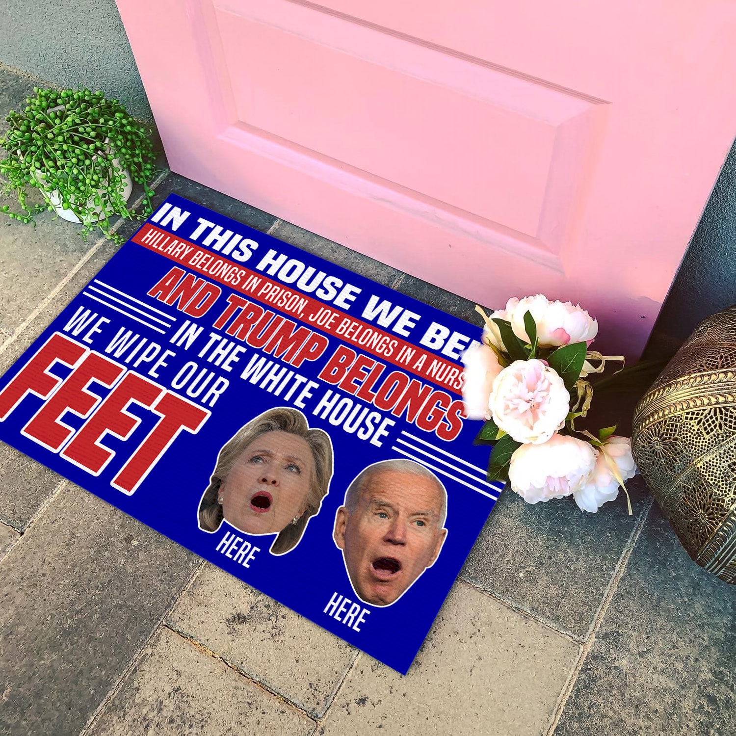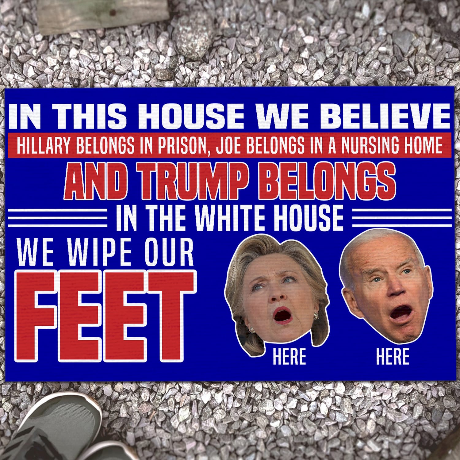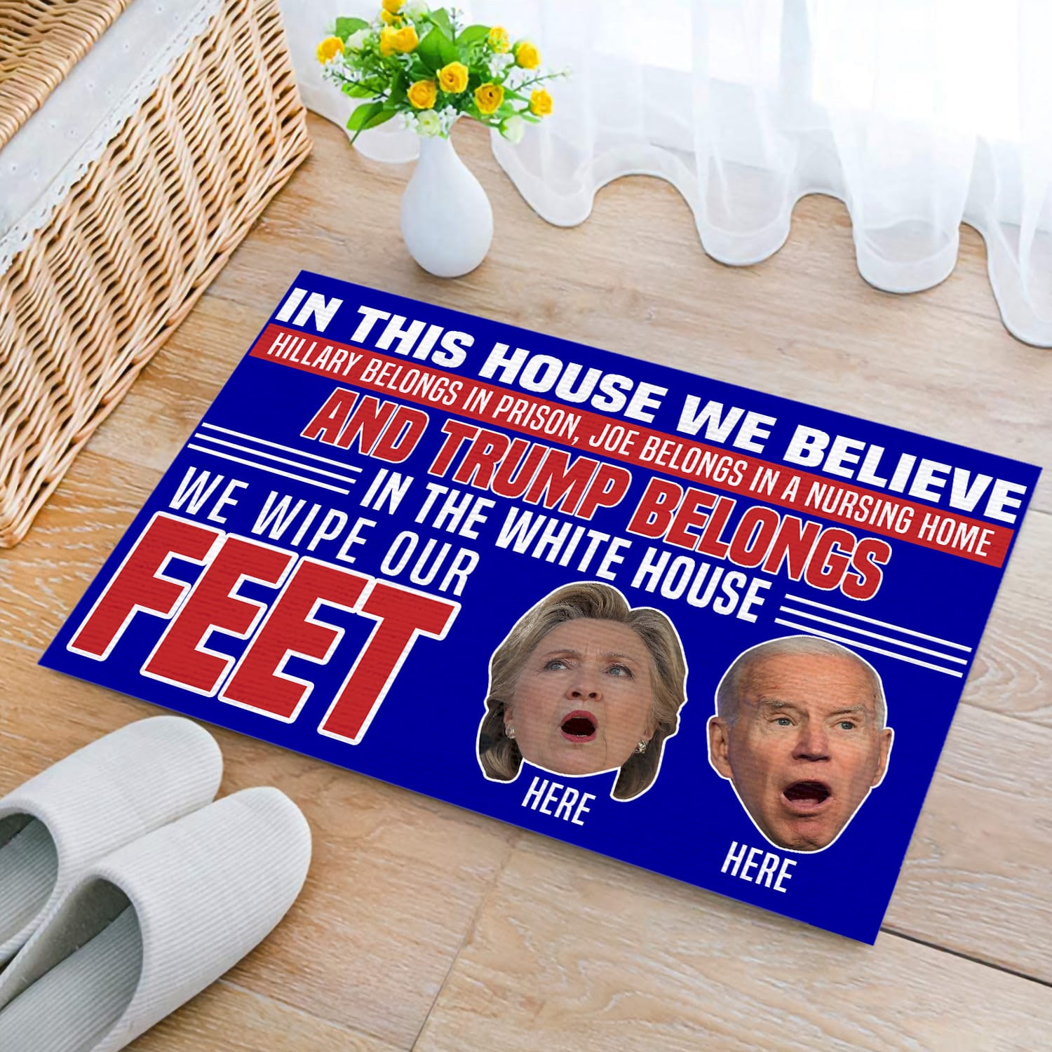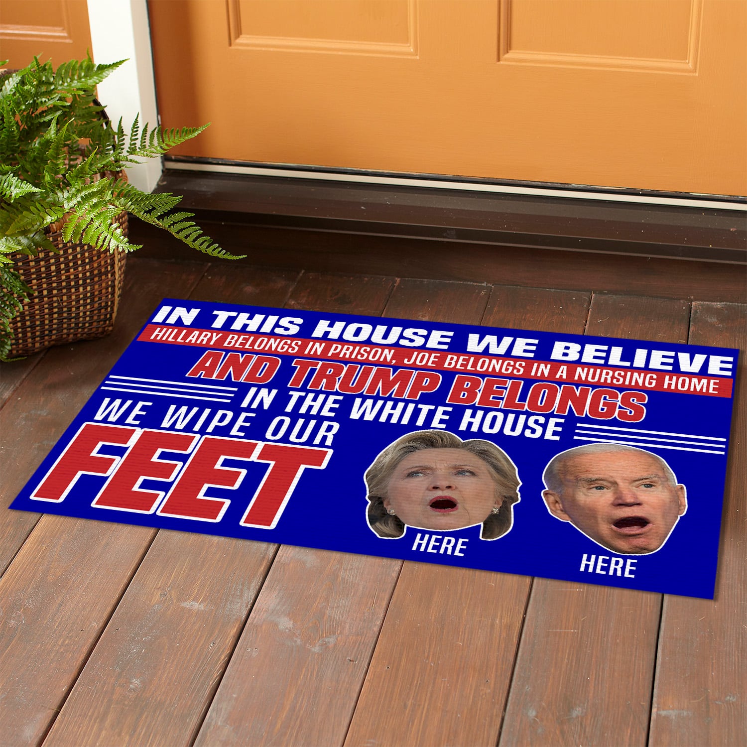 Let’s Shop In This House We Believe Hillary in Prison Joe in A Nursing Home Trump White House Indoor Outdoor Doormat!