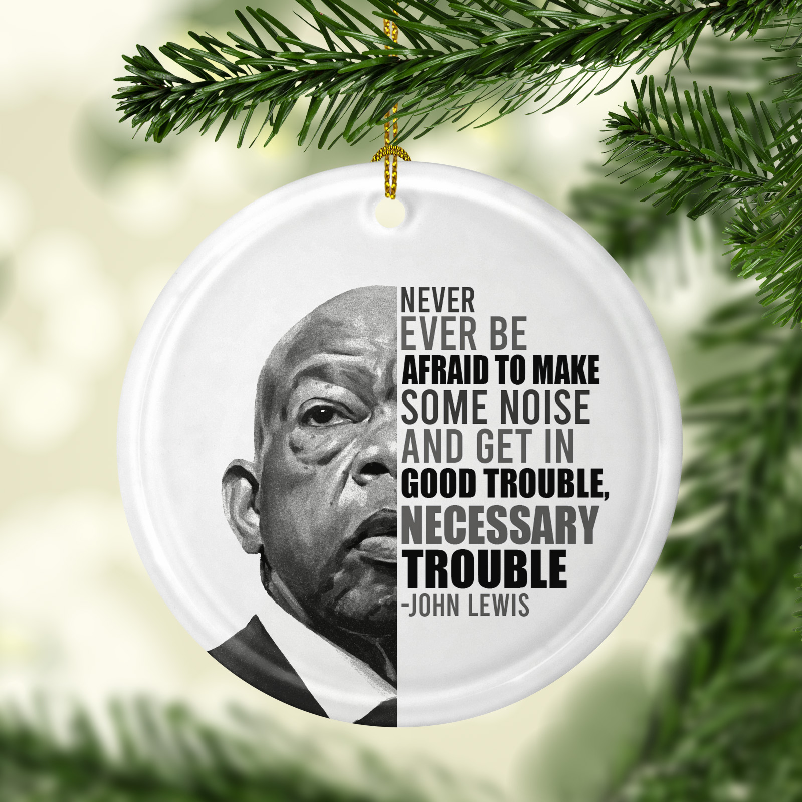 Let’s Shop John Never Ever Be Afraid To Make Some Noise Lewis Decorative Christmas Ornament – Flat Circle Ornament!