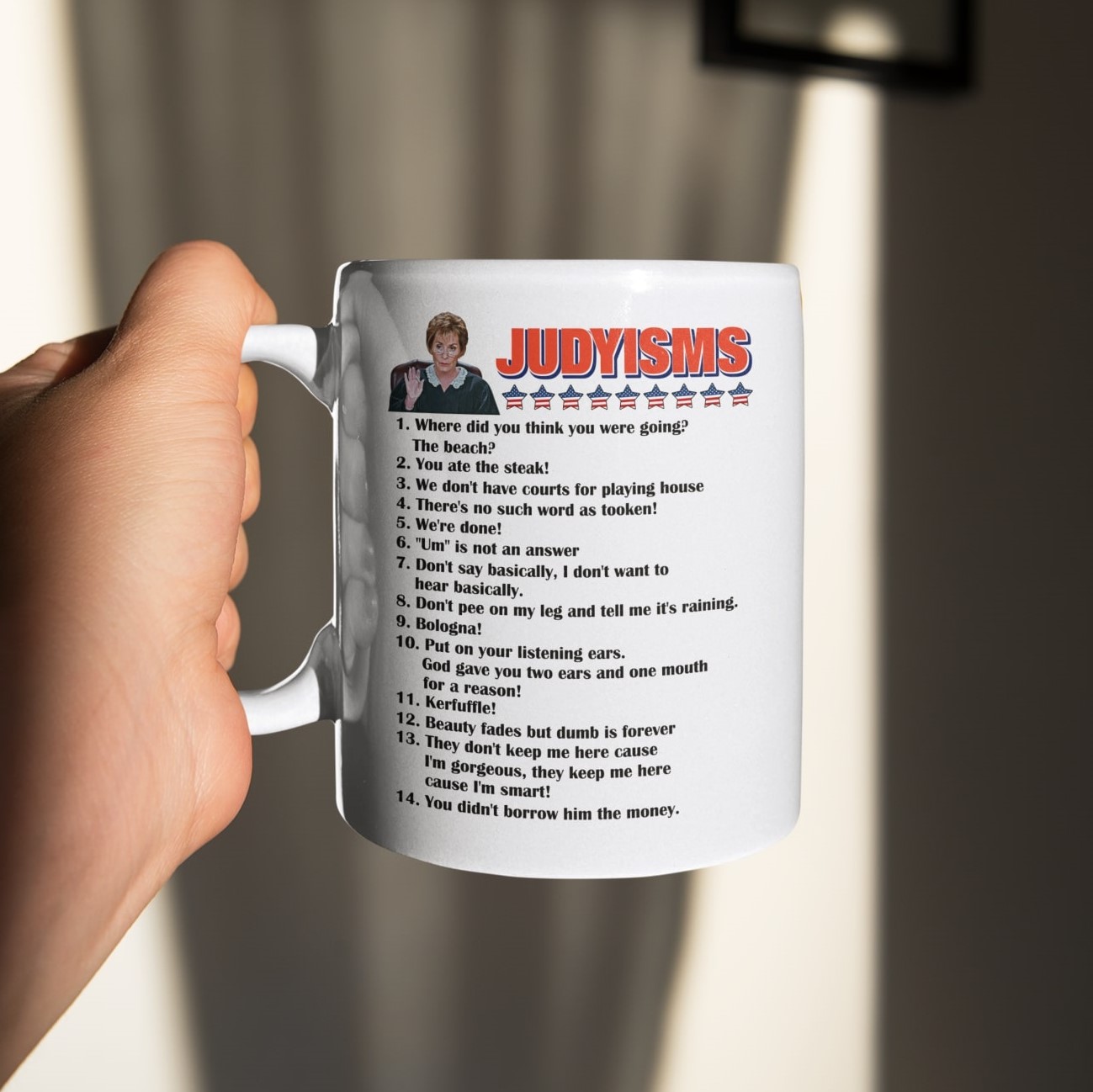 Are you spending too much time to find creative merchandise for you or suitable & special gifts for your mommy, your daddy, your son, your daughter, your children, your friends or someone you love? The struggle is over because we have various Judge Judy Judyisms Quotes Mug, Judyism Mug, Only Judy Can Judge Me Mug, Judge Judy Mug, Judge Judy Coffee Mug, Judge Judy Judyisms Quotes Mug, Only Judy Can Judge Me Coffee Mug, Judge Judy Travel Mug, Judge Judy 15 Oz Coffee Mug, Judge Judy Baloney Mug which will make perfect presents for your beloveds. In order to make your present stand out, we have created lots of unique and awesome customized photo gifts & personalized designs.