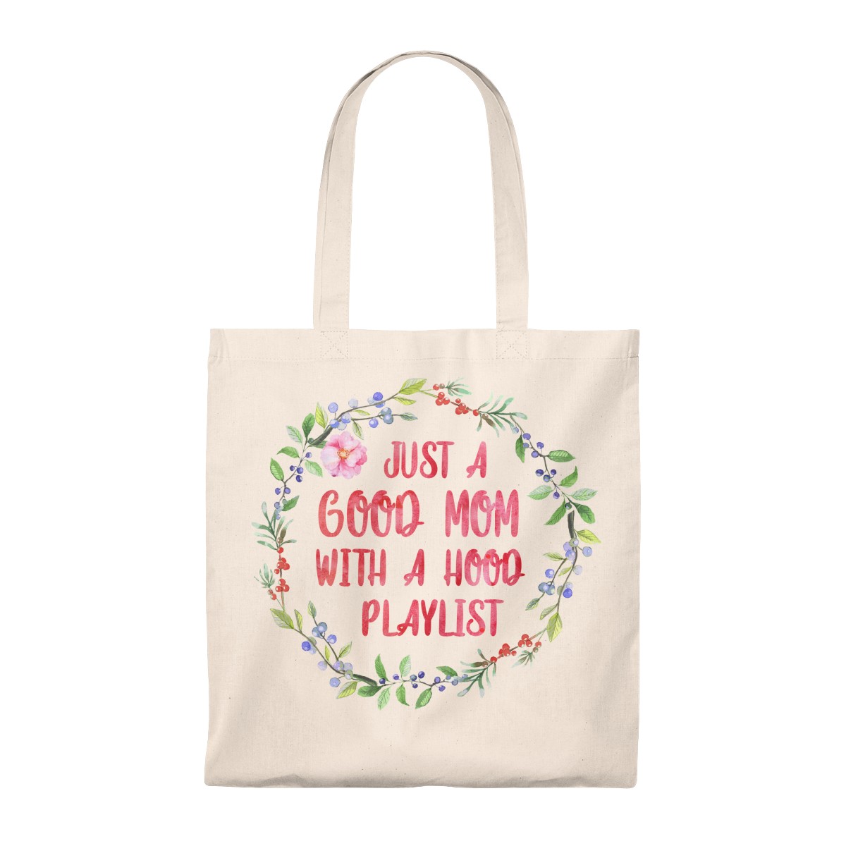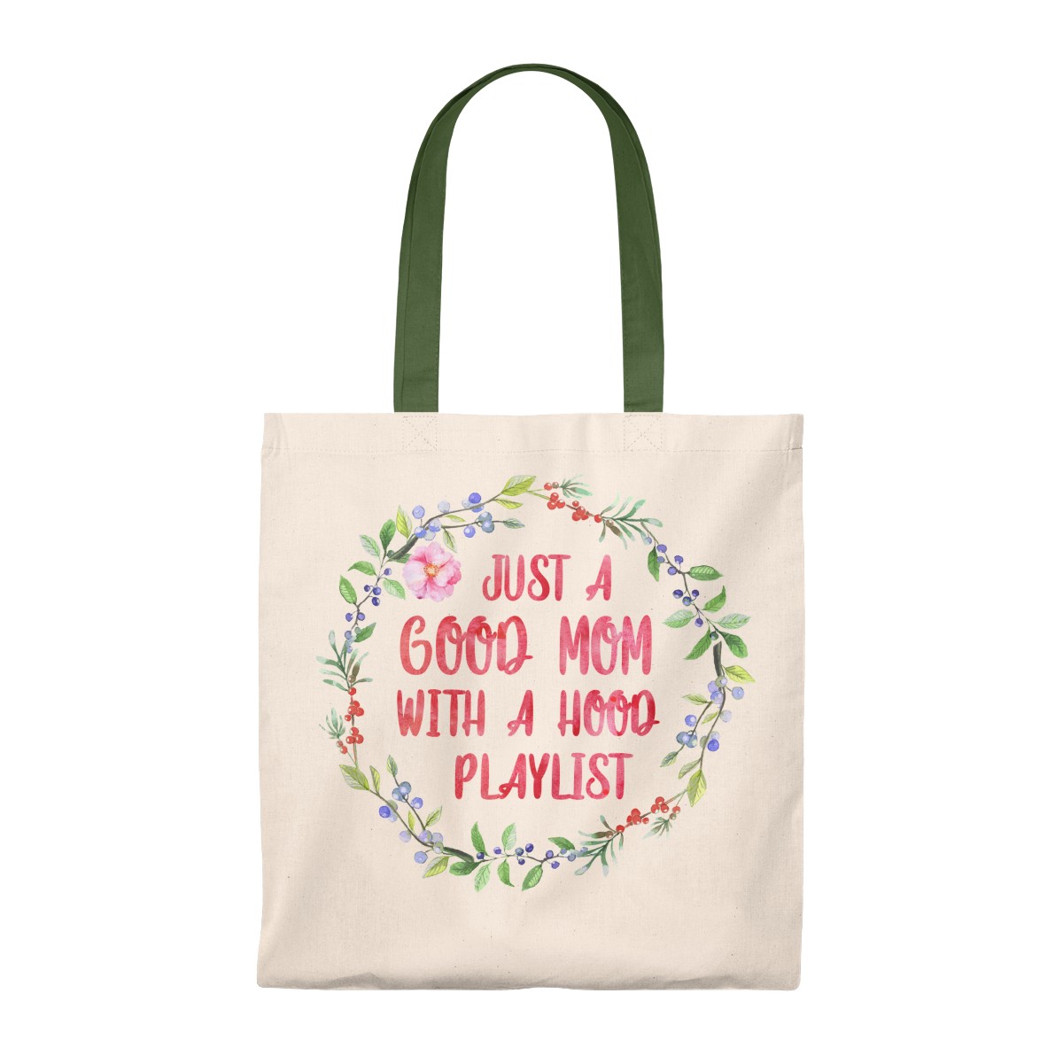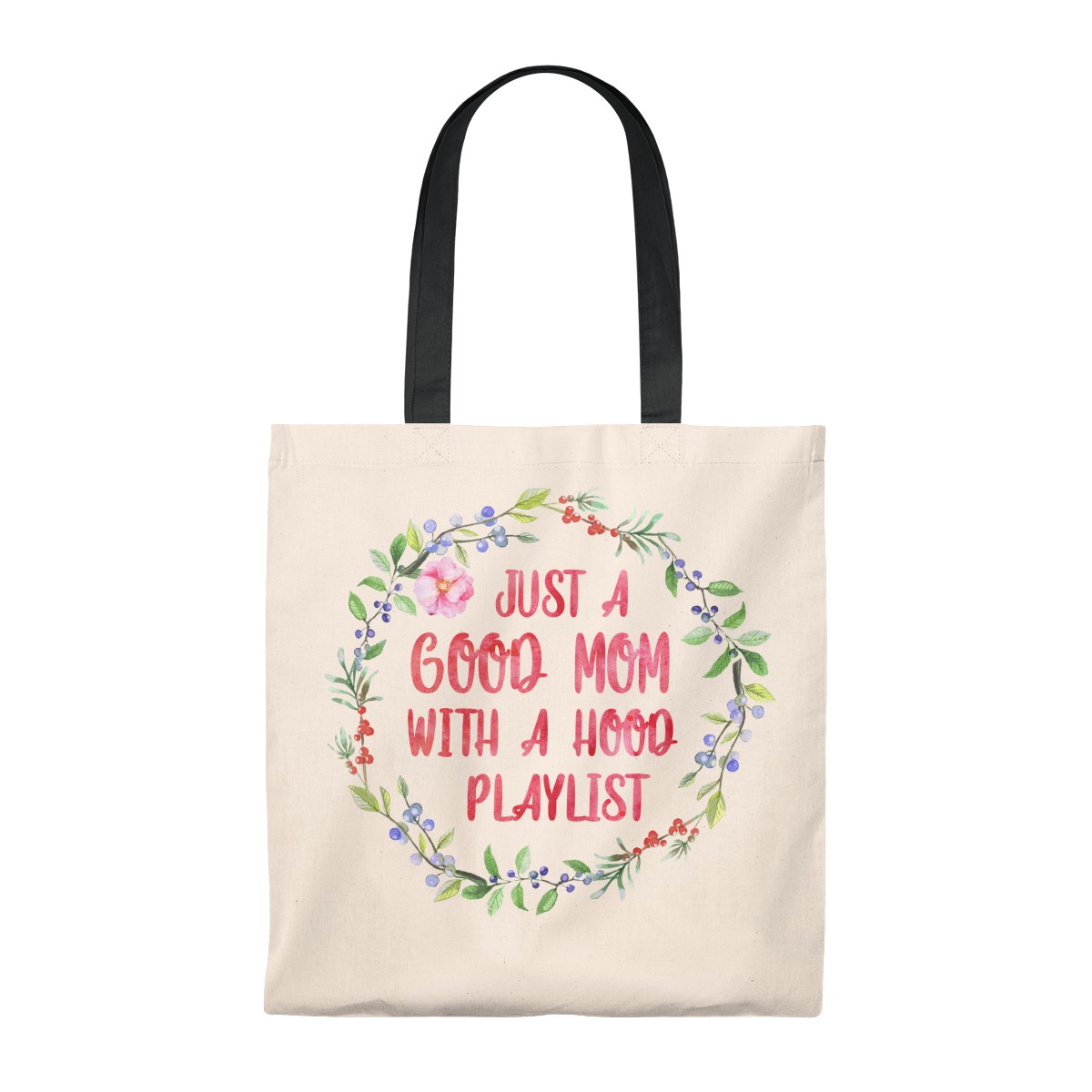 Just A Good Mom With A Hood Playlist Flower Vintage Canvas Tote Bag – Shoulder Bag – Reusable Grocery Shopping Bag